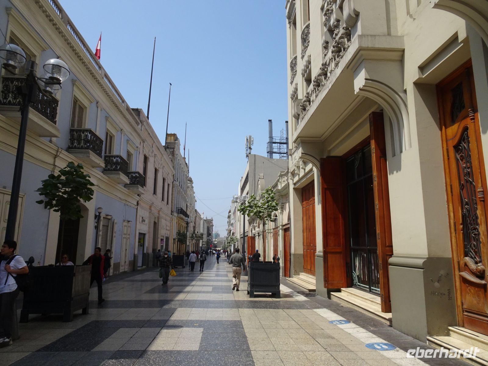 Der Tag beginnt mit einem gemütlichen und appetitlichen Frühstück im Hotelrestaurant. Um neun Uhr sind wir mit Karina verabredet, die uns heute ihre Heimatstadt Lima zeigt. Mit dem Bus fahren wir von Miraflores zur Altstadt. Es geht zügig voran, kein Stau hält uns auf.