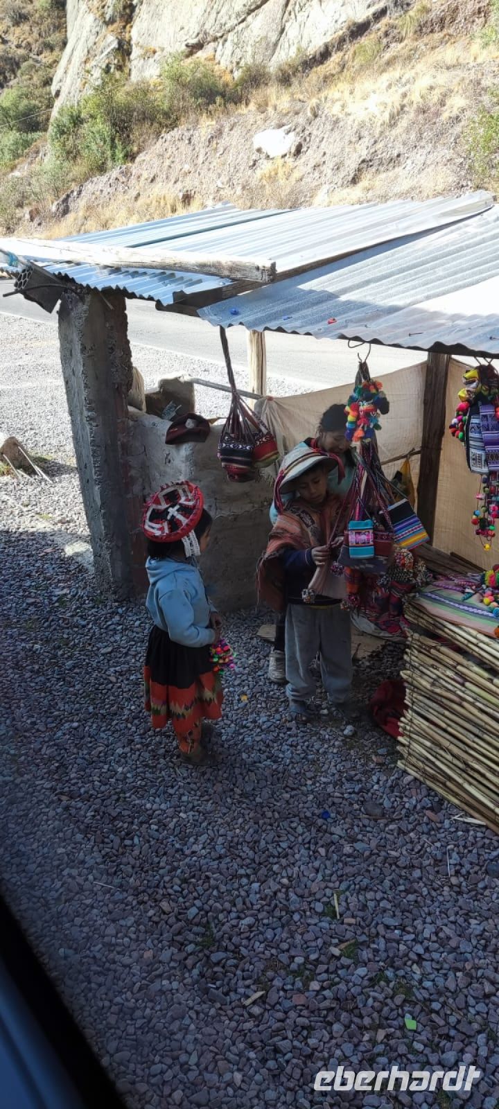 Am Nachmittag erreichen wir Raqchi. Einst, etwa 400 bis 1200 nach der Zeitenwende gab es hier eine Stadt der Tiwanakus. Zunächst kommen wir zu den runden Lagersilos, die durch ihre Bauweise dafür sorgten, dass Quinoa und Mais über einen langen Zeitraum aufbewahrt werden konnten. Vom Tempel des Viracocha Gottes sind nur noch wenige, wenn auch beeindruckende Wände erhalten. Bald erreichen wir den höchsten Punkt unserer Reise: 4335 Meter. Wir legen einen Stopp ein und erwerben bei den Händlerinnen vor Ort einige schöne Tücher. Alex hat uns noch ein Erlebnis versprochen. Und das hat es in sich. Kurz vor Puno durchqueren wir Juliaca - das "Indien Perus". Tatsächlich scheint es sich um eine relativ reiche Stadt zu handeln, allerdings von ganz anderen kulturellen Werten geprägt, wie wir sie kennen. In unseren Augen scheint die Stadt total heruntergekommen. Nun, wir sind nicht in Europa.