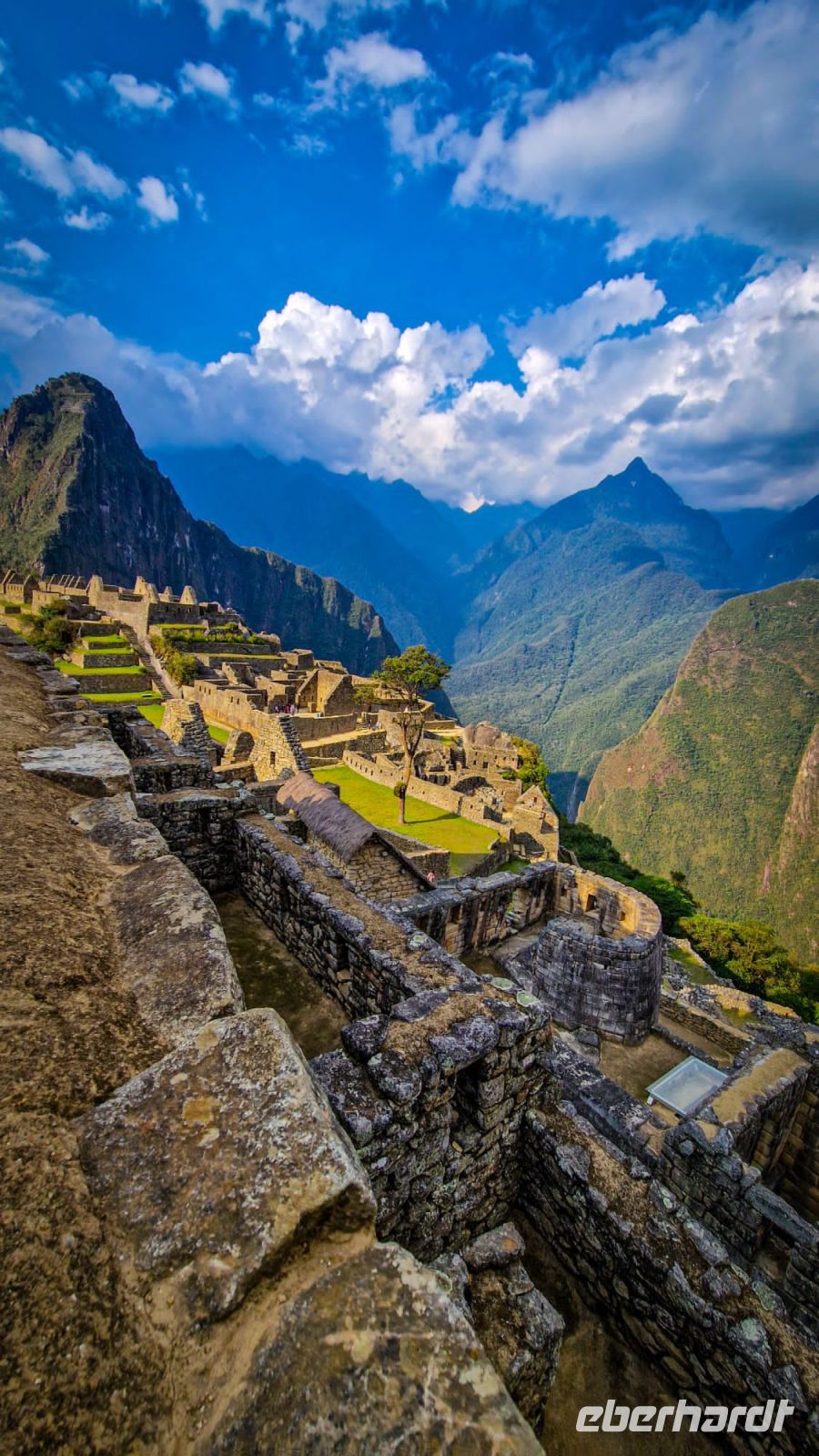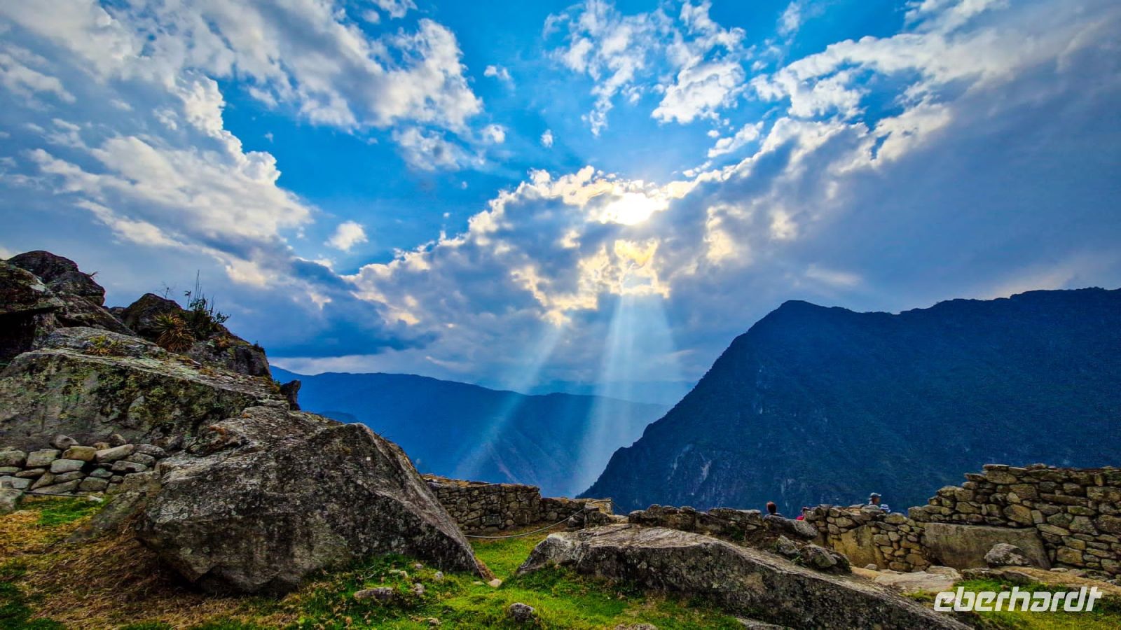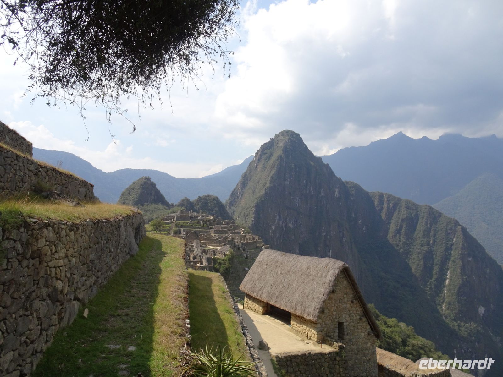 Im Zug wird Kaffee serviert und jeder erhält eine kleine Snackbox. Nach zwei Stunden erreichen wir Aguas Calientes. Inzwischen haben wir erfahren, dass wir ein Upgrade für unser Hotel erhalten haben. Statt 4 Sternen warten nun 5 auf uns. Im Hotel legen wir die „schweren“ Rucksäcke ab und weiter geht es mit leichtem Gepäck. Mit dem öffentlichen Busshuttle geht es steil bergauf nach Machu Picchu. Endlich ist es soweit: wir erreichen eines der sieben neuen Weltwunder: die Stadt Machu Picchu. Einst von den Inkas erbaut, bewohnt und doch wieder verlassen, lag Machu Picchu mehrere hundert Jahre verborgen im Dschungel. 1915 wurde Machu Picchu von dem Amerikaner Bingham wieder entdeckt und der Öffentlichkeit bekannt gemacht. Heute streifen täglich fast viertausend neugierige Touristen durch die Anlage. Ananina und Alex begleiten uns und zeigen uns die Geheimnisse von Machu Picchu.