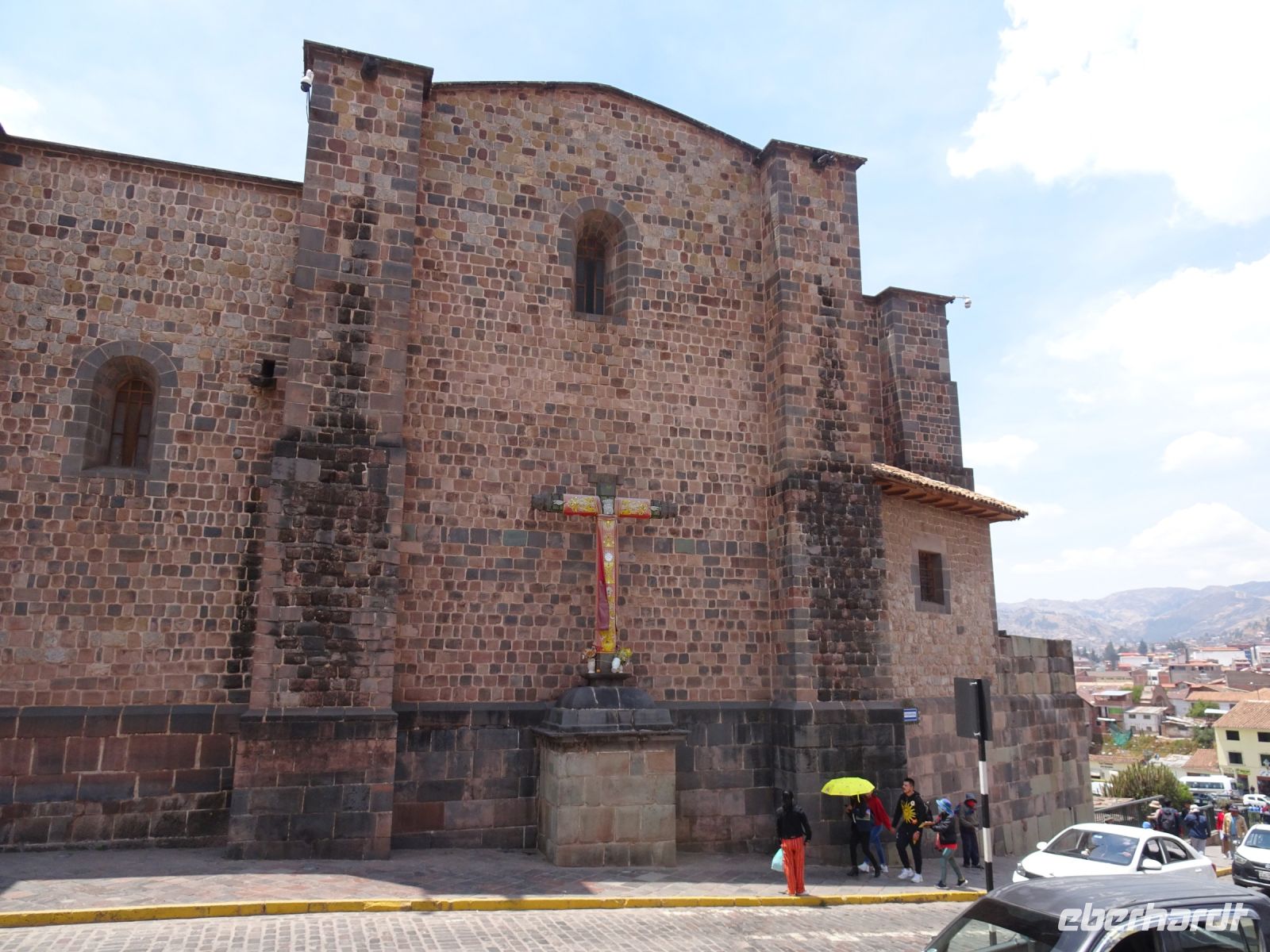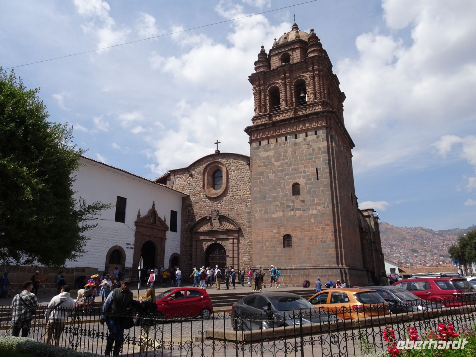 Die Kathedrale, zu der wir nun kommen, zählt zu den schönsten kirchlichen Bauten in ganz Südamerika. Sie wurde 1550 dort erbaut, wo sich einst ein Inkaheiligtum befand. In den nächsten Jahrhunderten gab es Neu- und Umbauten. Eine Besonderheit ist eine offene Kapelle, die es ermöglicht, Gottesdienste im Freien abzuhalten. Dies diente zum Einen dazu, größeren Gruppen von Gläubigen und Pilgern die Teilnahme am Gottesdienst zu ermöglichen und zum anderen dazu, den Indigenen, die man nicht in der Kirche dulden wollte, dennoch ebenfalls den Zugang zum Gottesdienst zu ermöglichen. In einer kleinen Kapelle kann man die berühmte Skulptur der „dunklen Jungfrau“, der Virgen Morena besichtigen, die 1580mvon einem einheimischen Künstler, welcher der Enkel eines Inka-Herrschers war, angefertigt wurde. Eine weitere Besonderheit. Für die die Kirche bekannt ist, sind die bereits oben erwähnten Autosegnungen, die interessanter Weise sowohl von einem Mönch als auch einem Schamanen vorgenommen werden können.