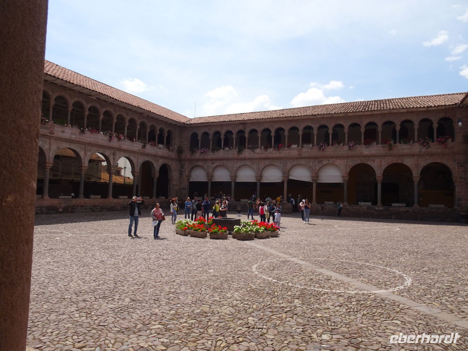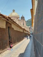 Nun begeben wir uns zum Convento Santo Domingo. Einst befand sich hier die Coricancha, ein Tempel für den Sonnengott der Inkas. Es war der reichste Inka-Tempel mit goldenen und edelsteinbesetzten Wänden. Im Garten standen lebensgroße Statuen aus Gold und Silber, die Menschen, Tiere, Bäume und Pflanzen darstellten. Für Zeremonien wurden Mumien von adligen Inkas aufgestellt. Der Tempel wurde von den Konquistadoren komplett ausgeplündert und zerstört. Später wurde dann das Kloster Santo Domingo an dieser Stelle errichtet.
