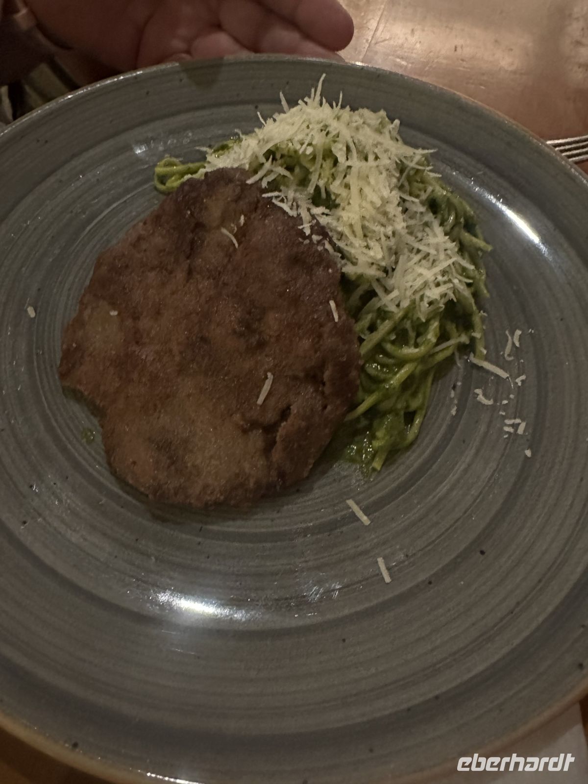 Hauptgang: Fleisch (paniertes Steak) oder Fisch