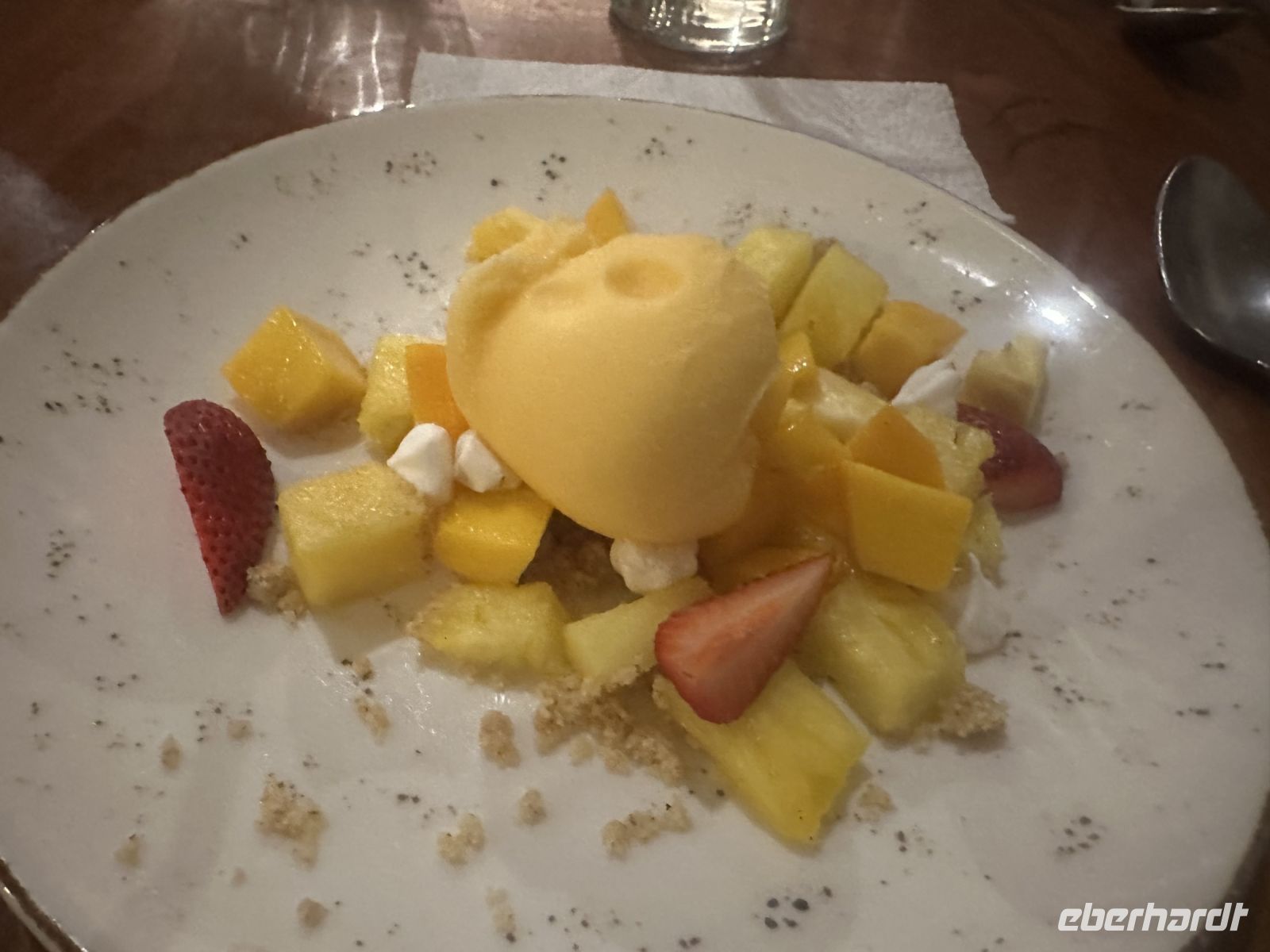 Nachtisch: frisches Obst, Caramel Flan oder Eis