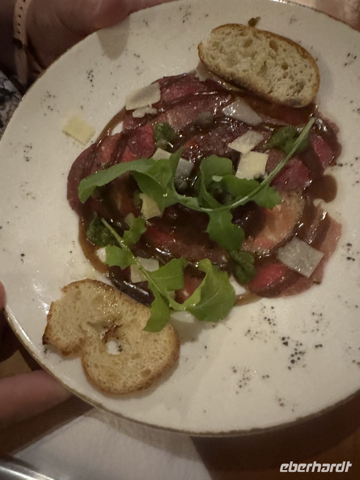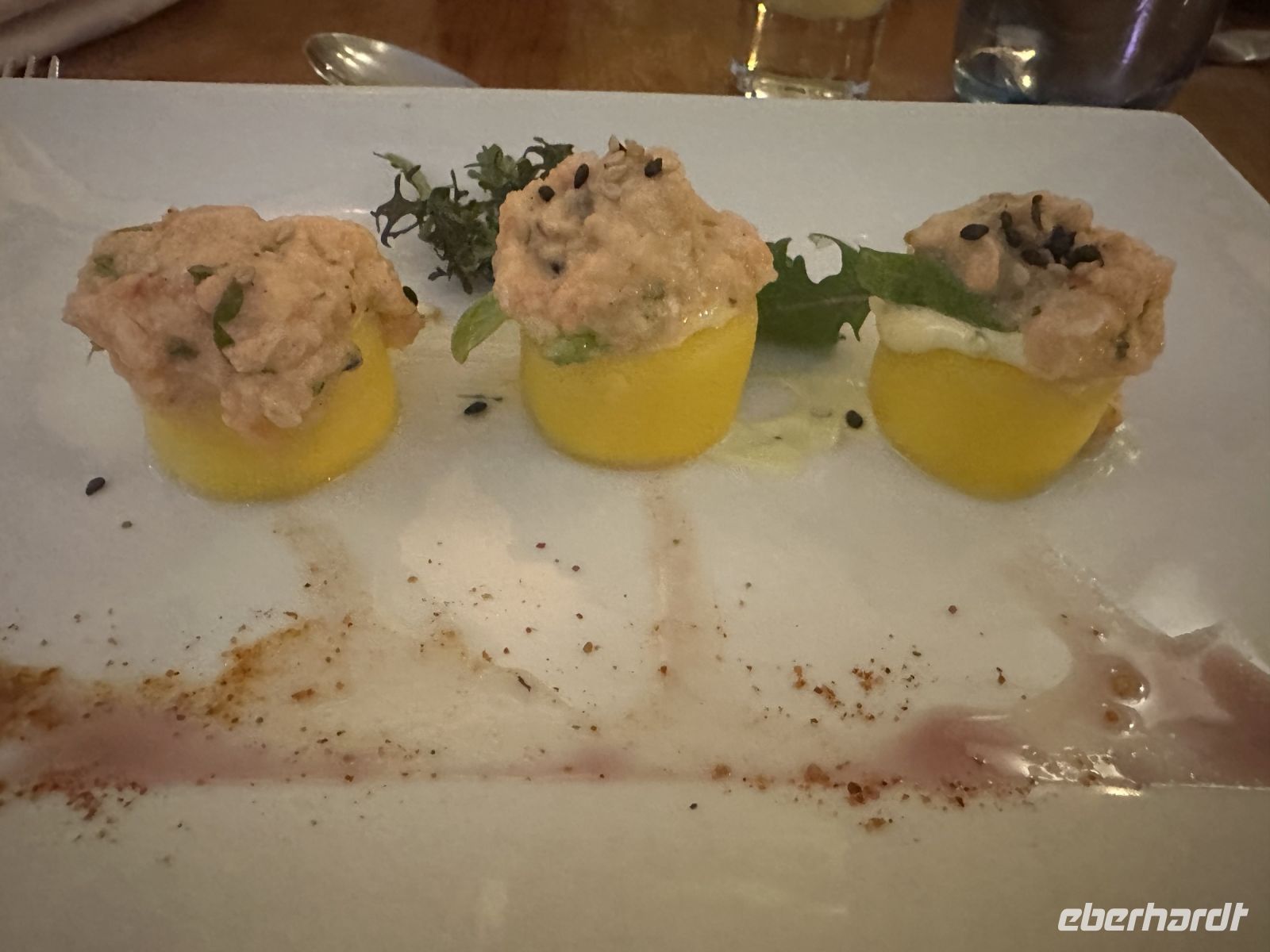 Abendessen im Restaurant Aqa (Empanadas, köstliches Roastbeaf, Vanillecrepe)