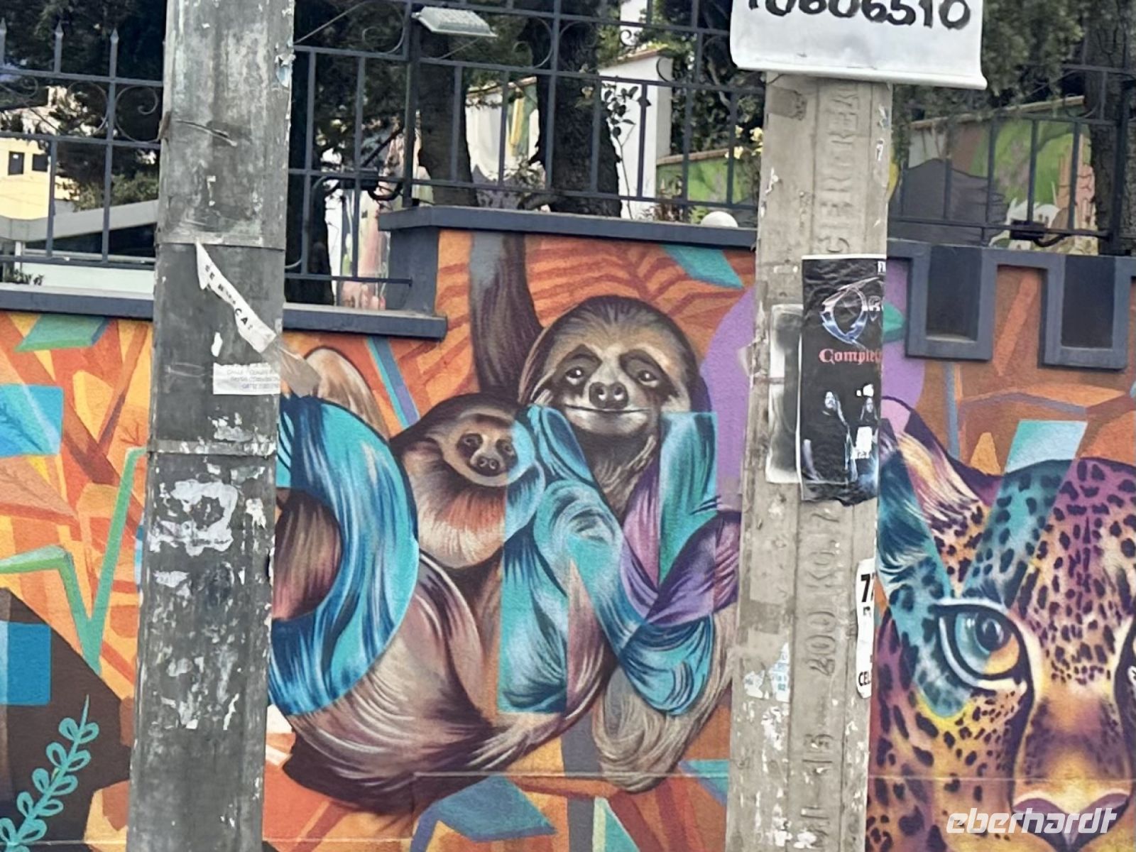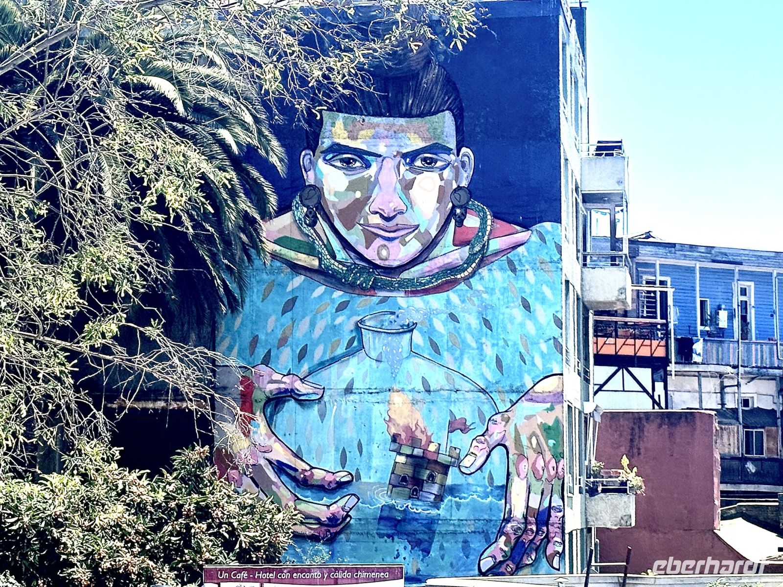 José macht uns auf die vielen eigenwillig gestalteten Häuser reicher Ajmaras aufmerksam. Man spricht von Neoandiner Architektur, die sich seit den 2000er Jahren hier entwickelt hat. Der Künstler Freddy Mamani, der viele der Häuser entworfen hat, lehnt sich dabei an Farben und Formen andiene Kulturen an. Die farbenfreudigen Fassaden erinnern dabei an Muster von Stoffen oder Kreamik.