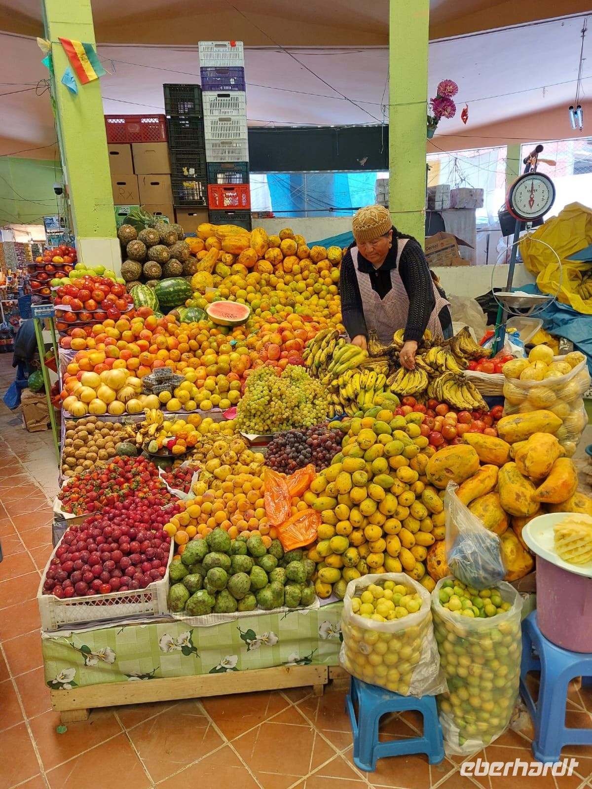 Nach dem Besuch des Klosters kehren wir zurück zum Bus und fahren Richtung Miraflores. Wir legen wir einen Stopp am Park der Liebe ein, der dem Park Güell in Barcelona ähnelt. Zum Schluss der Stadtbesichtigung besuchen wir eine Markthalle, in der wir exotische Früchte verkosten.