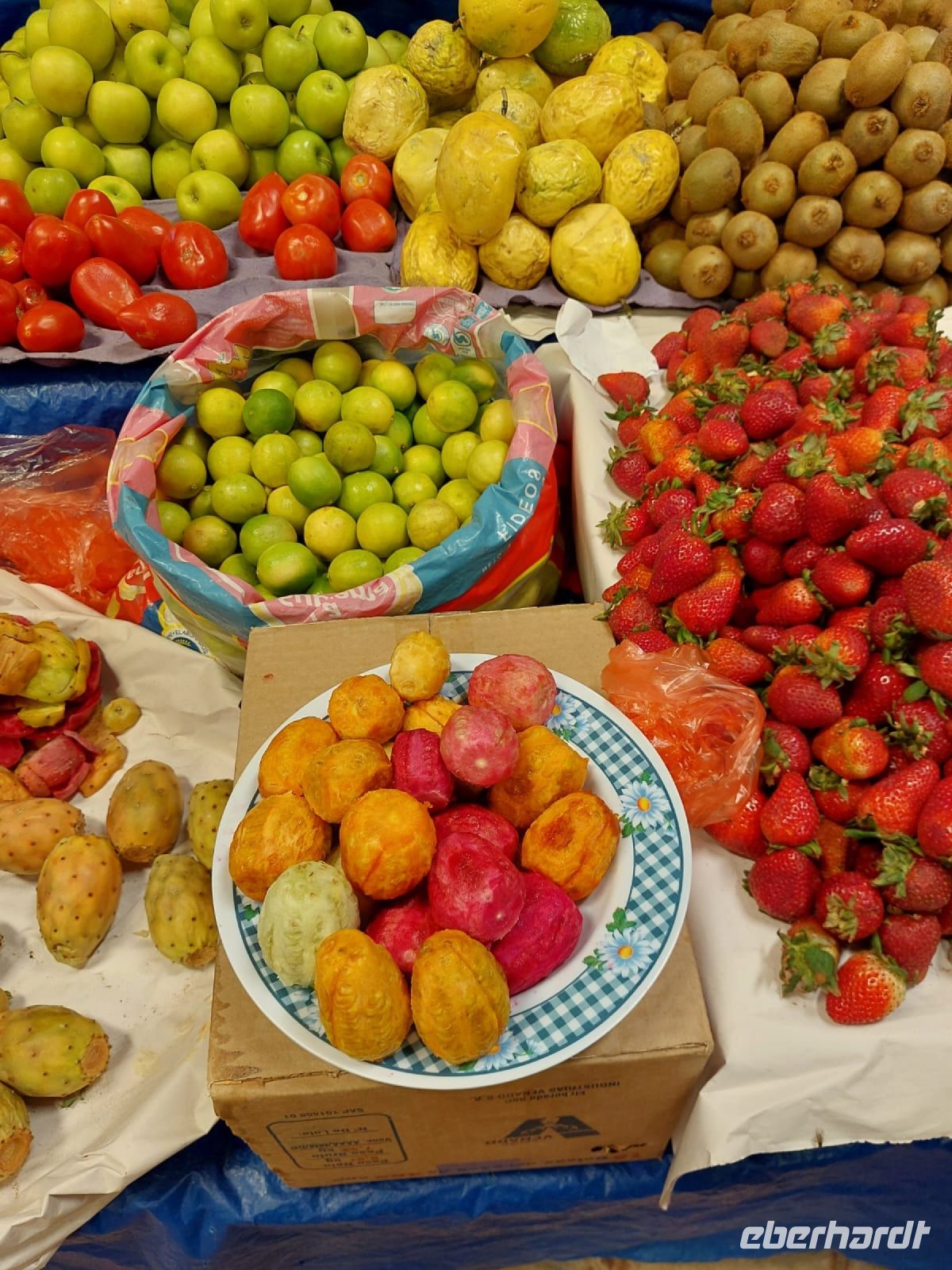Ergänzung: Benito hat diverse Bilder, Pflanzenteile und gefriergetrocknete Kartoffeln im Gepäck, die er uns unterwegs zeigt und erklärt. Chunos, so heißen die konservierten Kartoffeln, wurden erfunden, um Vorräte für Zeiten der Dürre und Lebensmittelknappheit anzulegen. Hierfür entwickelten die Andenbewohner ein mehrere Tage andauerndes Verfahren. Die frisch geernteten Kartoffeln werden nachts der Kälte ausgesetzt und tagsüber mit den Füßen zerstampft. Ziel ist es, die gesamte Flüssigkeit zu entfernen. Wenn sie dann in der Sonne getrocknet werden, entwickeln sie sich zu Chunos negros, schwarze Kartoffeln, werden sie vor der Sonne geschützt, gibt es Chunos blancos, weiße Kartoffeln.