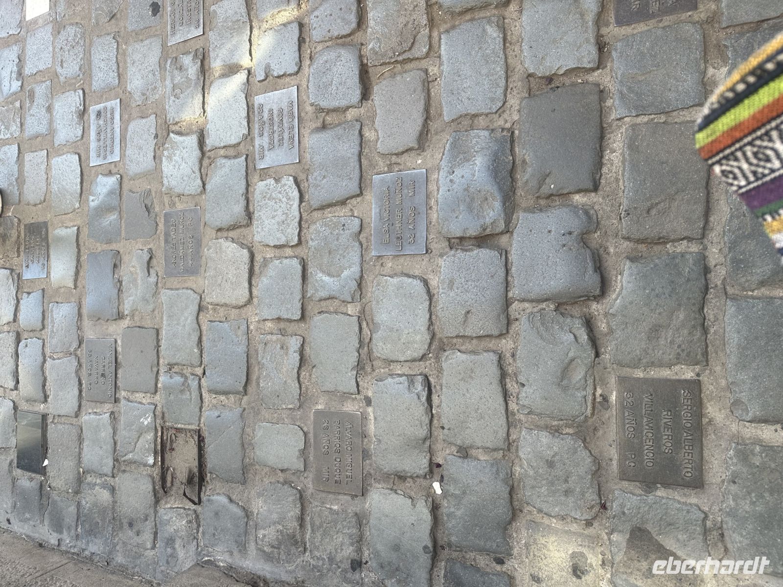 Ein Stückchen weiter türmen sich hinter einer gläsernen Wand bemalte Steine. Jeder Stein erinnert an einen Corona-Toten. Einst waren es fast vierzigtausend Steine, die Nächtens von der Polizei weggeräumt wurden. Viele der Trauernden waren von weit gekommen, um für ihre Liebsten Gedenksteine nieder zu legen. Entweder sie bekamen es nicht mit, dass die Steine weggeräumt wurden oder sie konnten sich nicht mehrfach die Reise nach Buenos Aires leisten. Die übrig gebliebenen Steine werden nach Protesten der Hinterbliebenen heute von der Glaswand geschützt.