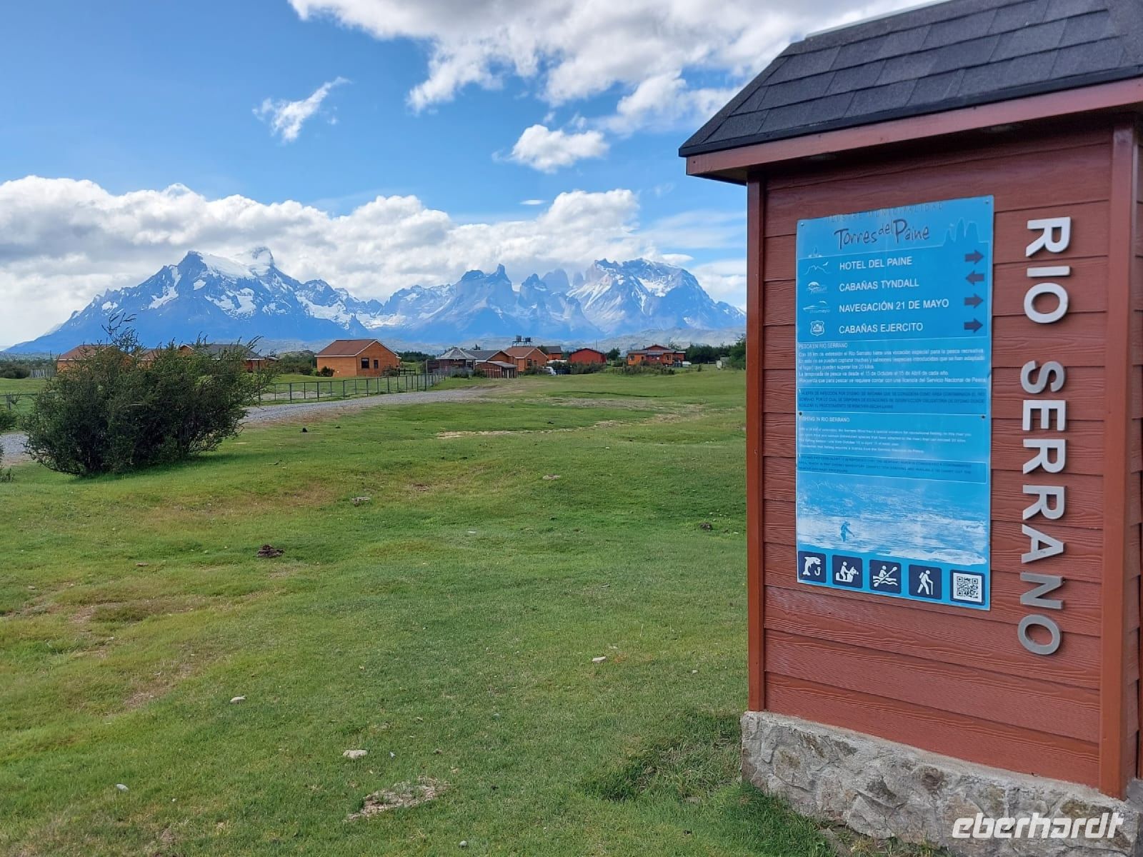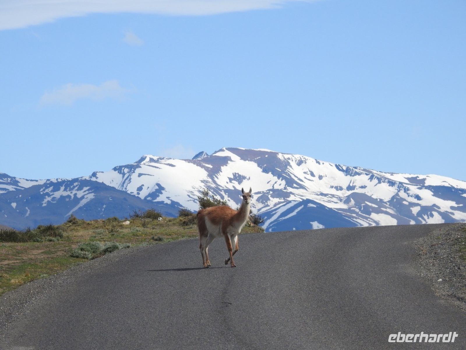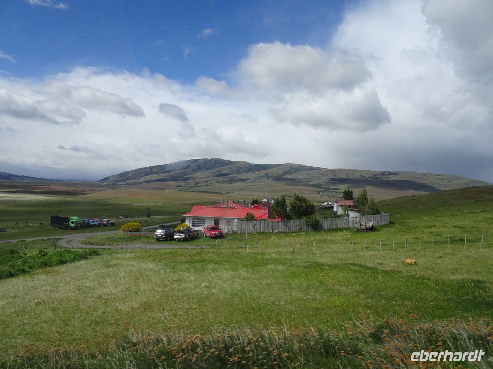 Nico hat Lunchpakete mitgebracht. Wir unternehmen einen Tagesausflug in den Nationalpark Torres del Paine. Die Sonne scheint und verspricht uns einen weiteren schönen Tag. An einem großen Souvenirladen legen wir eine Pause für Kaffee, WC und Shopping ein. Die Taschen füllen sich. Wir fahren weiter, sehen ein paar Guanacos, einen Gaucho mit Schafen und legen immer wieder Fotostopps ein. Am Cerro Castillo besuchen wir einen großen Souvenirshop mit WC und Cafeteria und einem Briefkasten, wo sofort geschriebene Postkarten eingeworfen werden können. Na, mal sehen, ob die ankommen.