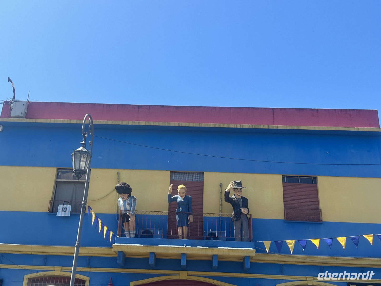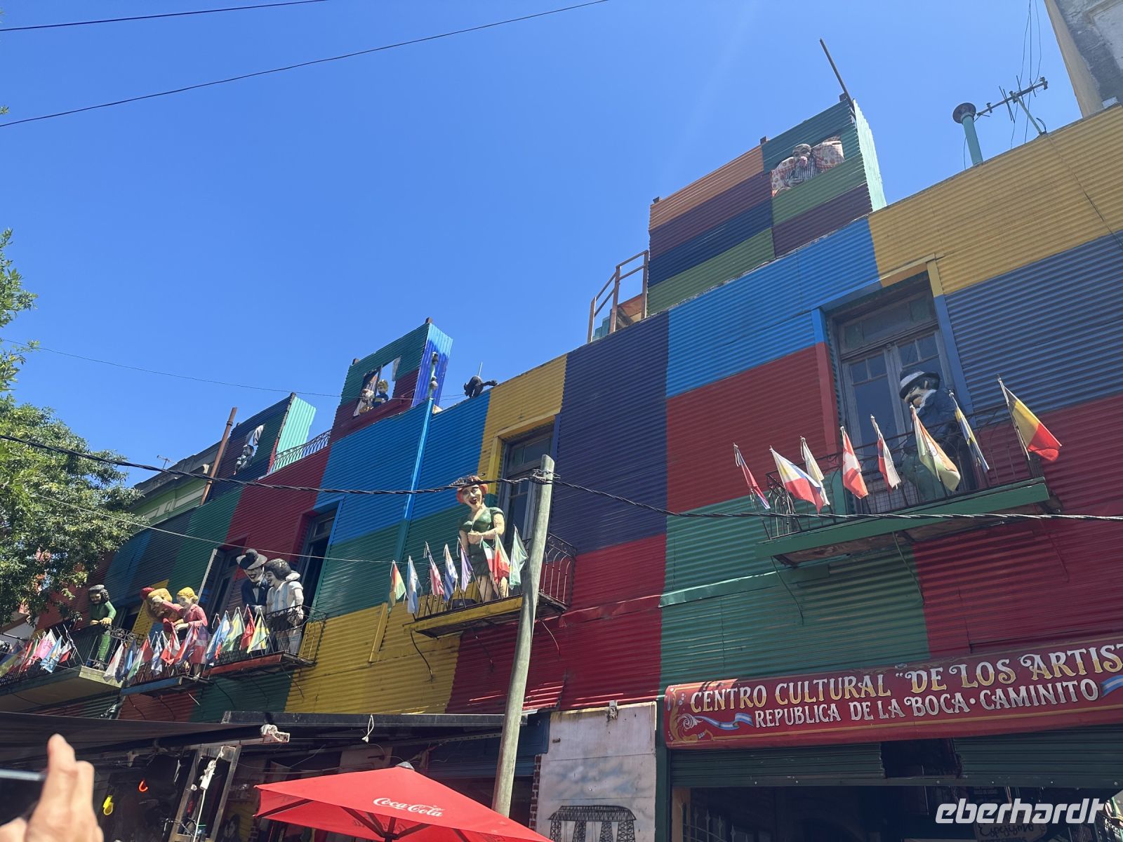 Wir steigen jetzt in den Bus und fahren zum Viertel La Boca. Einst ein Armenviertel und nach einer Epidemie verlassen, wurden die Häuser später von Wohnungslosen besetzt. Heute ist La Boca ein Sammelsurium an bunten Blechhäusern, von deren Balkonen Berühmte Persönlichkeiten in Form von Pappfiguren winken. Restaurant reiht sich an Restaurant und Souvenirladen an Souvenirladen. Vor einem der Restaurants tanzt ein Pärchen Tango. Uns gefällt‘s. Der Nachmittag steht zur freien Verfügung, es bietet sich an, die Florida Straße aufzusuchen, eine Fußgängerzone in der Nähe des Hotels.