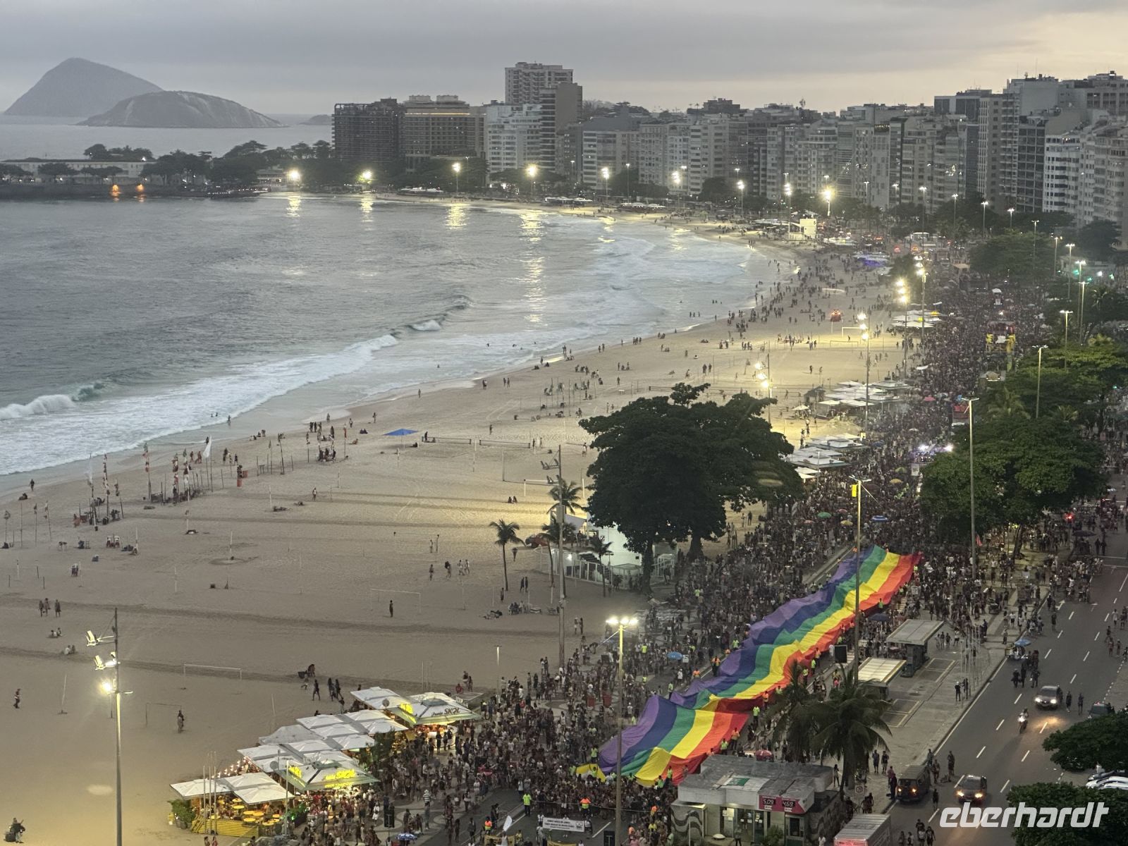 Am Abend treffen wir uns auf dem Dachgarten des Hotels und genießen den Ausblick auf die nächtliche Copacabana. Heute findet hier der brasilianische CSD statt. Mit einem Caipirinha in der Hand, spendiert von unserem Reiseveranstalter Eberhardt TRAVEL verabschieden wir uns von dieser fantastischen Reise.