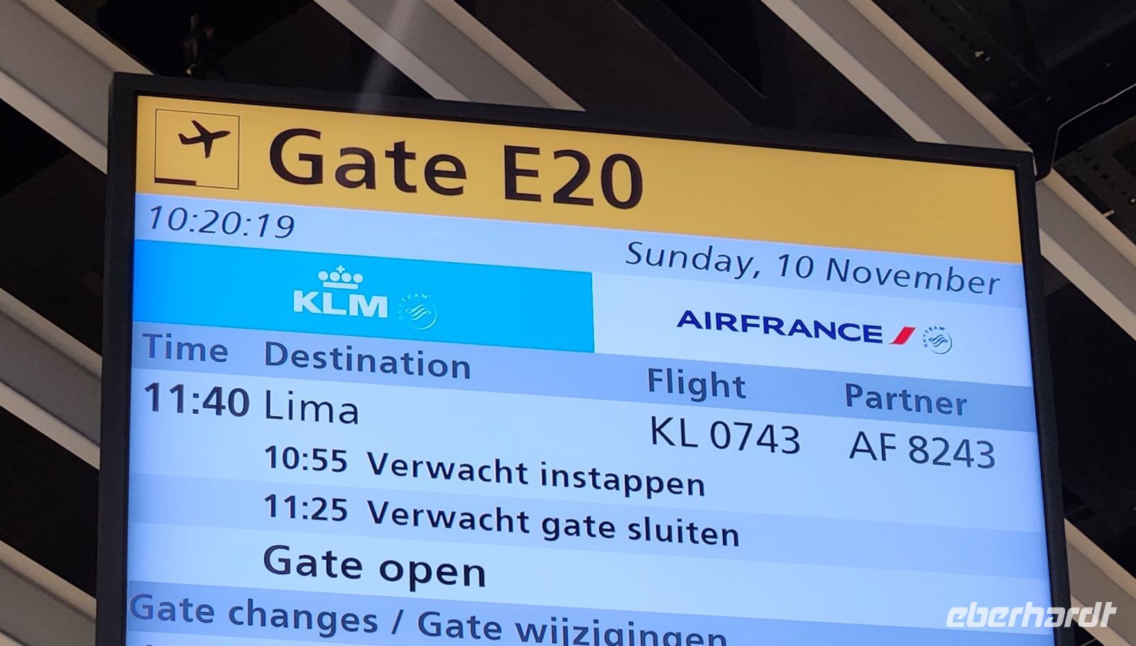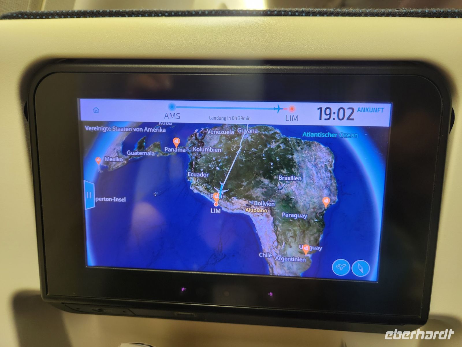 Aus verschiedenen Richtungen kommend treffen wir uns alle in Amsterdam am Abflug-Gate unseres KLM-Fluges nach Lima. 12 Stunden braucht der Flieger, um den Atlantik und Südamerika zu überqueren, bis man Lima, die Hauptstadt Perus, an der Westküste am Pazifik erreicht. Wir genießen den guten Service an Bord, schauen Filme, lesen, versuchen ein wenig Schlaf zu finden, besuchen uns gegenseitig an unseren Plätzen oder treffen uns ganz hinten im Flieger in der Bordküche, dort stehen jederzeit Getränke und kleine Snacks bereit.