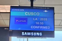 Heute heisst es " früh aufstehen" und dann noch einmal Geduld aufbringen durch den dichten Verkehr in Lima. Am Flughafen erwartet uns lebhaftes Treiben, einige können am Automaten eingecheckt werden, die anderen müssen zum Check-in-Schalter. Unser Flugzeug startet pünktlich und während des Fluges haben wir eine schöne Aussicht auf die Anden.