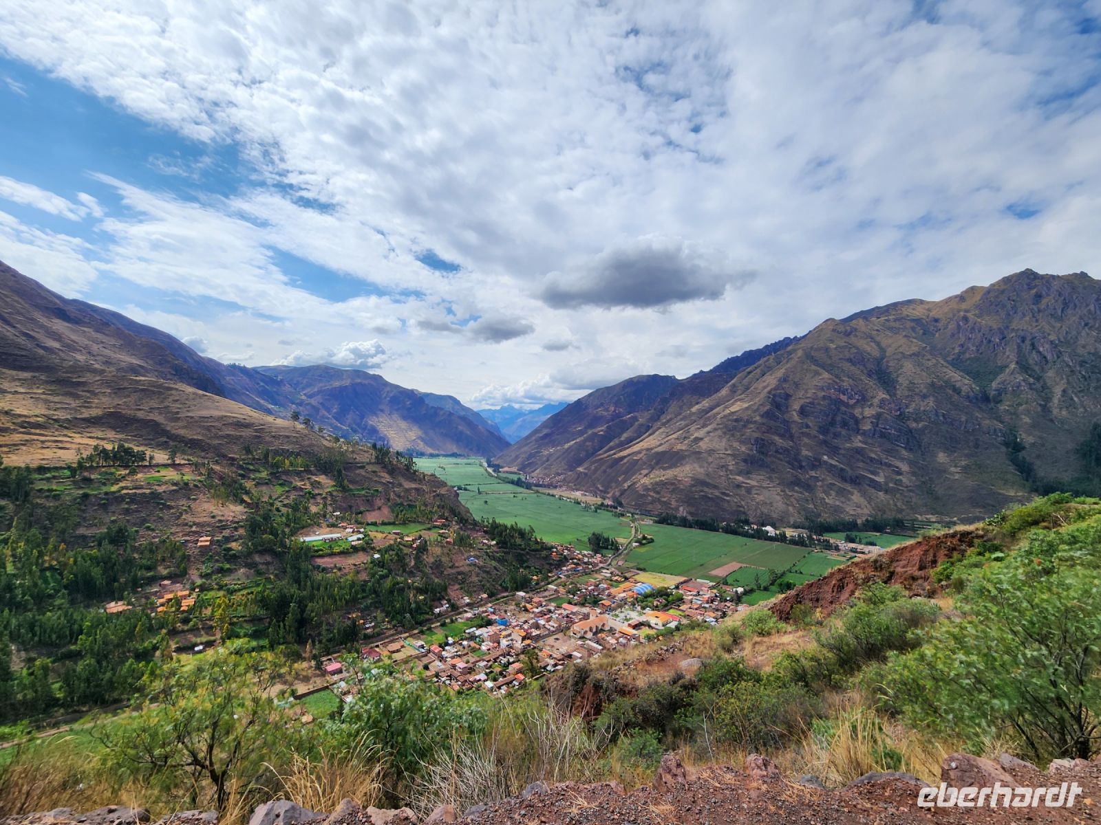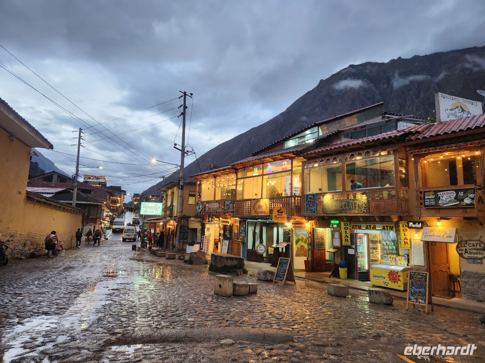 Wir holen uns direkt am Flughafen ein Tütchen Cocablätter und hoffen so, mit der plötzlichen Höhe von 3400 m gut klarzukommen, man kaut diese und schluckt sie denn auch herunter. Unser Bus macht sich direkt auf den Weg zum heiligen Tal der Inka. In einem gemütlichen Cafe stärken wir uns mit Empanadas und erreichen am Nachmittag das einfache und recht ursprüngliche Dorf Ollantaytambo.