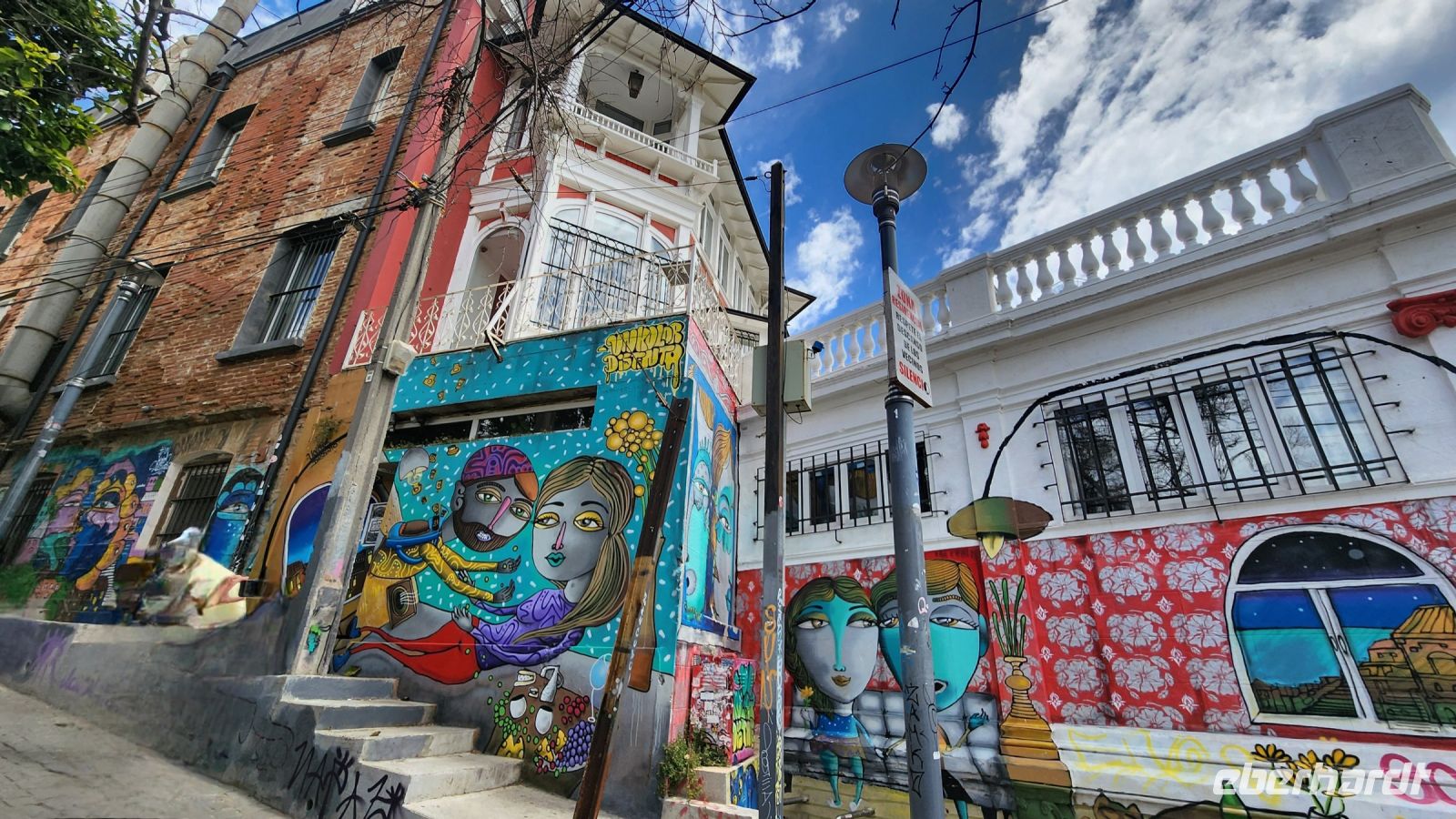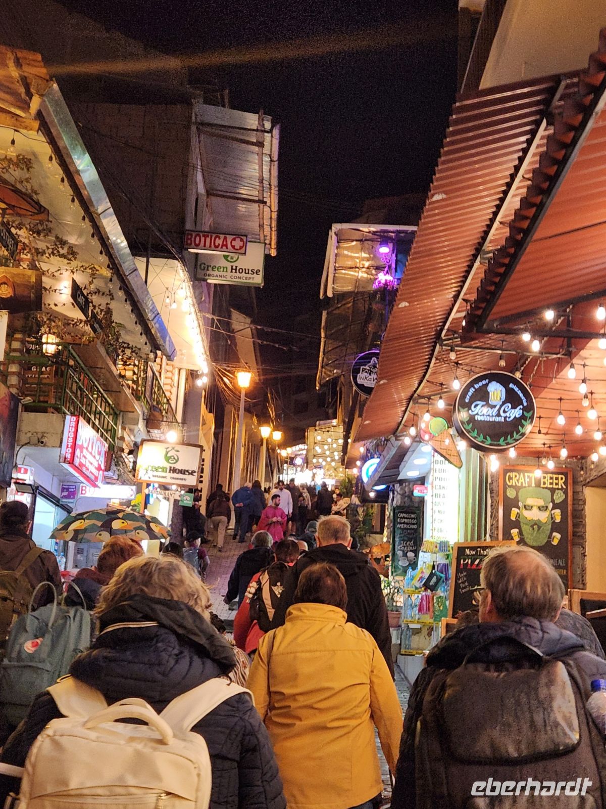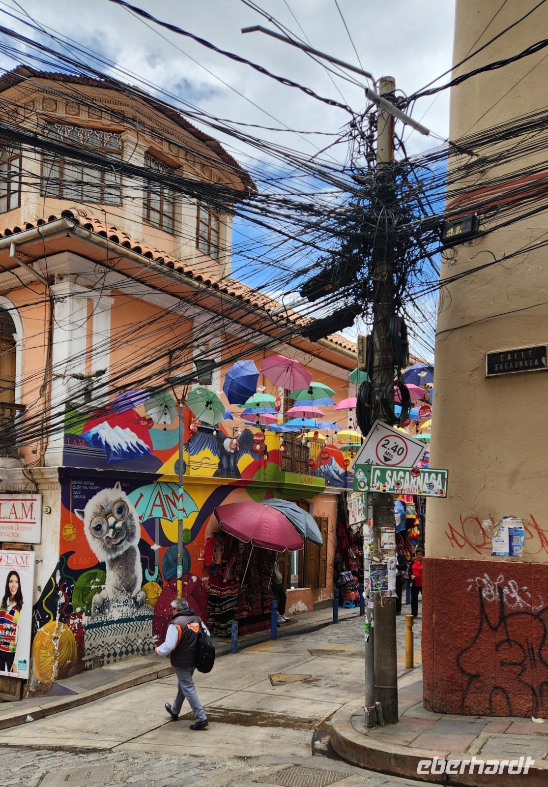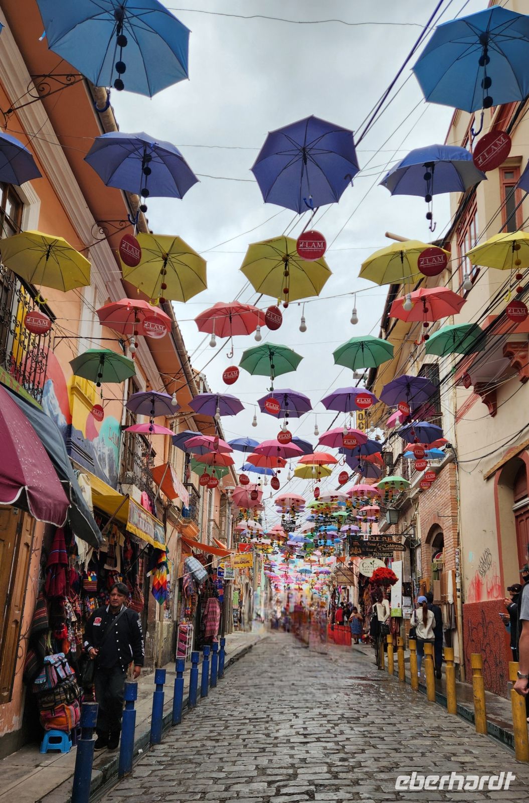 Unsere Mittagspause machen wir an der Calle de los Paraguas, sie sieht so fröhlich aus mit den vielen bunten Schirmen, ein typisches und sehr bekanntes Fotomotiv.