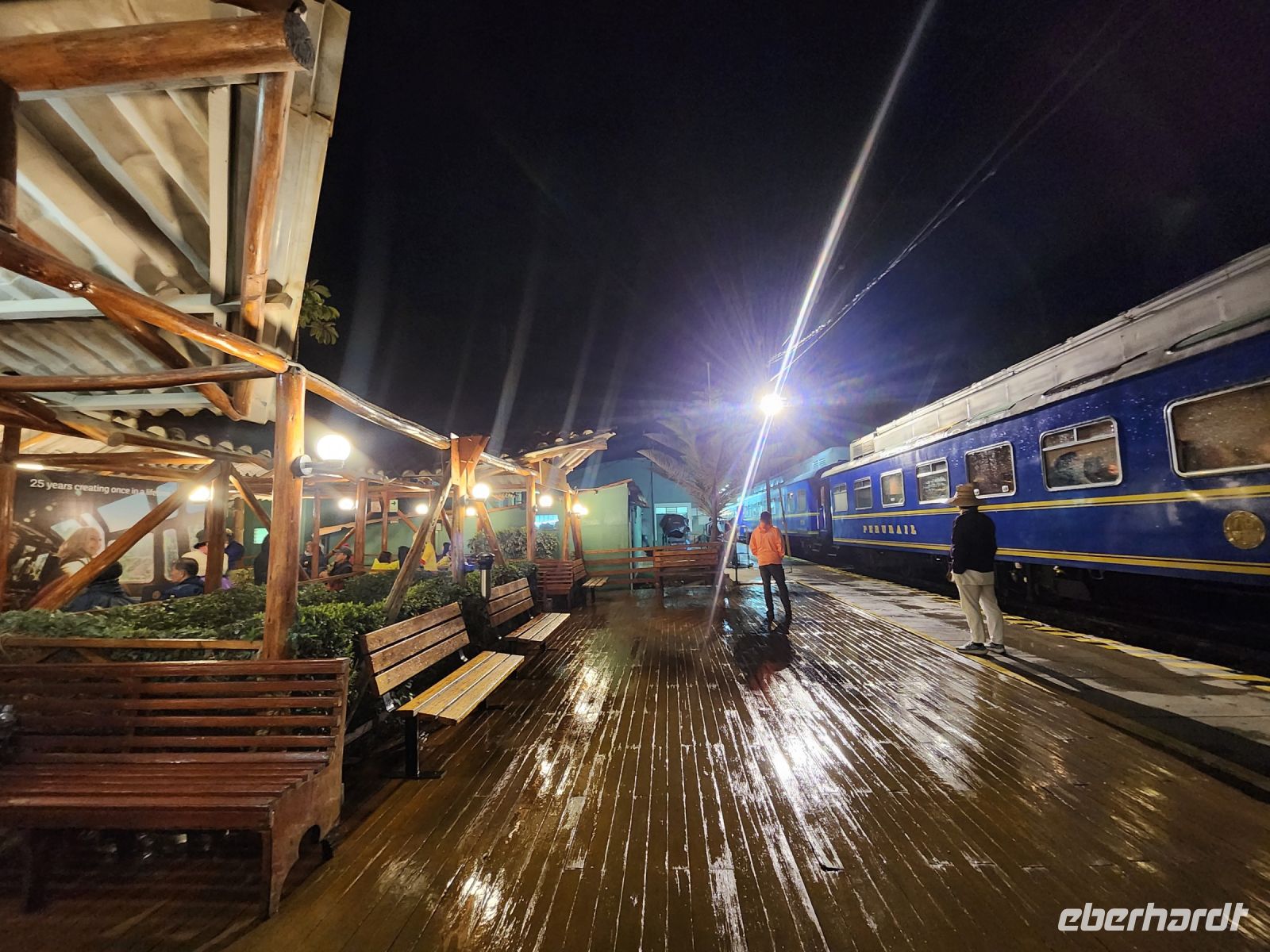 Die peruanische Bevölkerung hat für den nächsten Tag zu einem Nationalstreik aufgerufen. Da die Agentur sicherstellen möchte, dass wir am nächsten Tag den Machu Picchu besichtigen können (die Tickets muss man monatelang im voraus buchen), fahren wir kurzentschlossen noch am selben Abend mit dem Zug zum Machu Picchu Dorf.