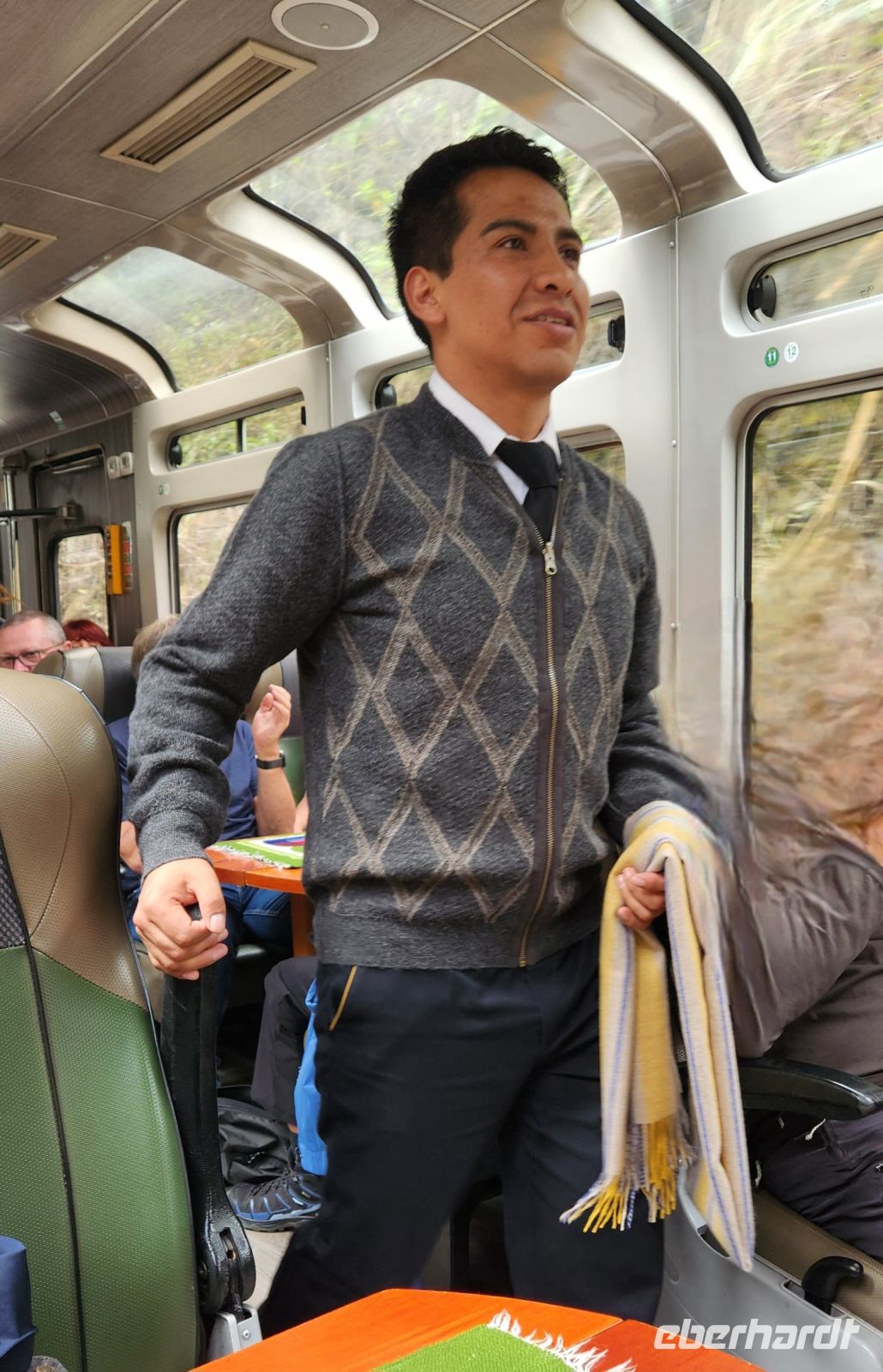 Am Mittag machen wir uns gemeinsam auf den Weg zum Bahnhof. Auf der Zugfahrt werden wir wieder mit Getränken und Snacks versorgt. Zu unserer Überraschung findet in unserem Abteil eine Modenschau statt! Die Modenschau und die peruanische Musik versetzen uns in beste Laune, fröhlich klatschen wir mit und einige von uns werden stolze Besitzer eines Alpaca-Wolle-Kleidungsstücks.