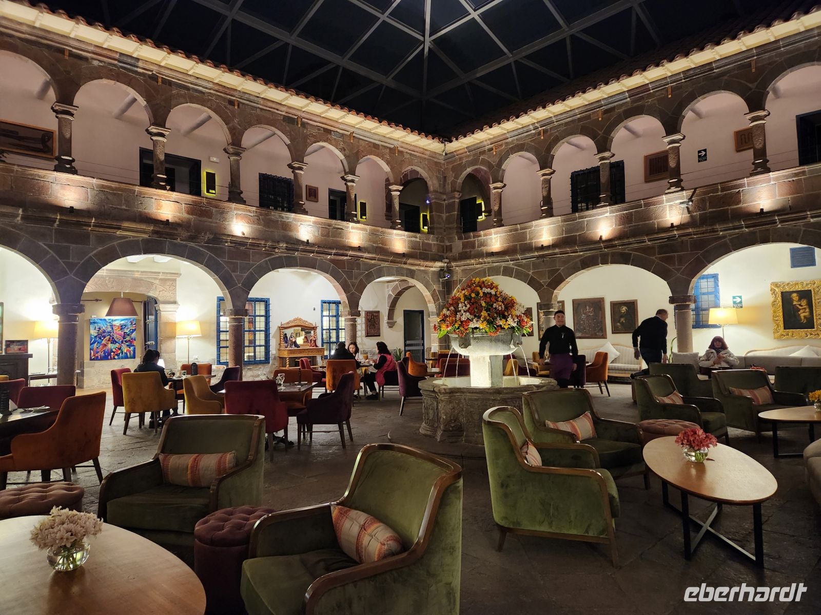 Nachdem wir in unserem herrschaftlichen Hotel mitten in der Altstadt von Cusco eingecheckt sind, gehen wir noch einmal aus. Wir besuchen ein hervorragendes Steakhouse, das Fleisch wird auf heissem Stein serviert. Es schmeckt wirklich köstlich.