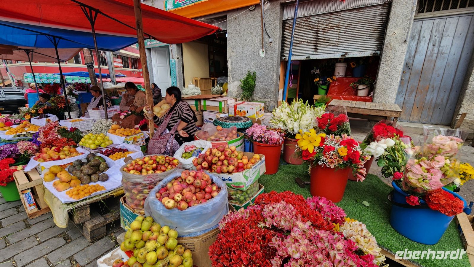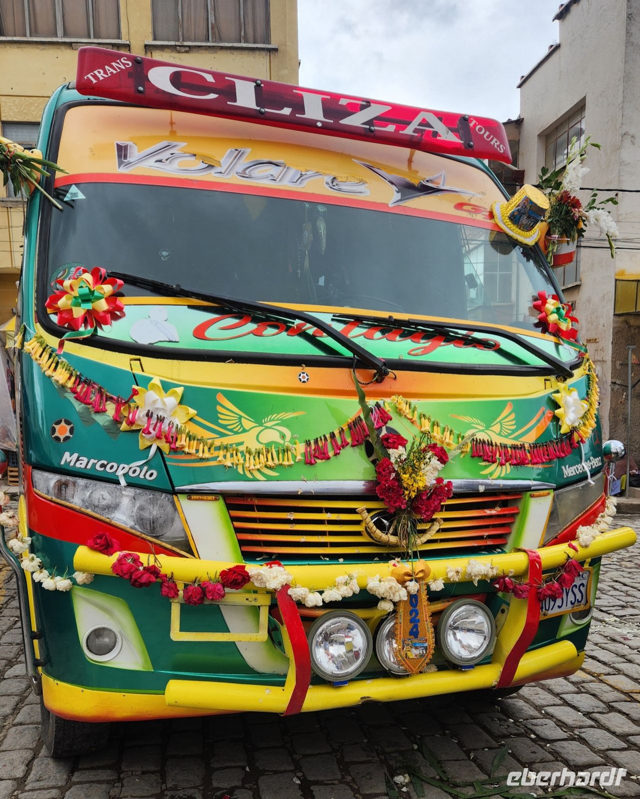 Wir haben an diesem Tag wieder einiges vor. Am Vormittag besichtigen wir den Ort Copacabana. Hier findet heute ein Blumenfest statt, der ganze Ort, jedes Auto und auch die Kirche sind mit bunten Blumen liebevoll geschmückt.