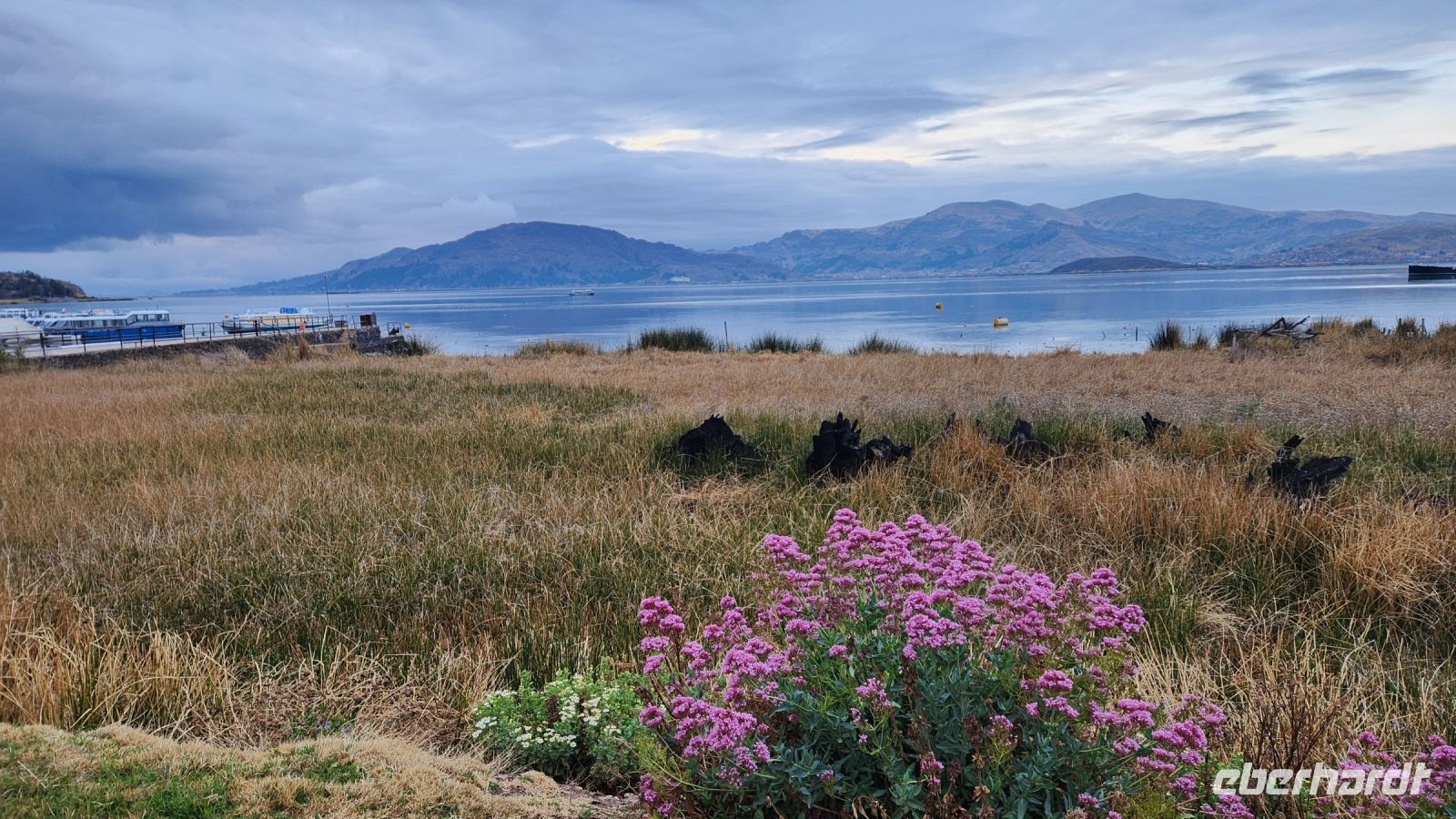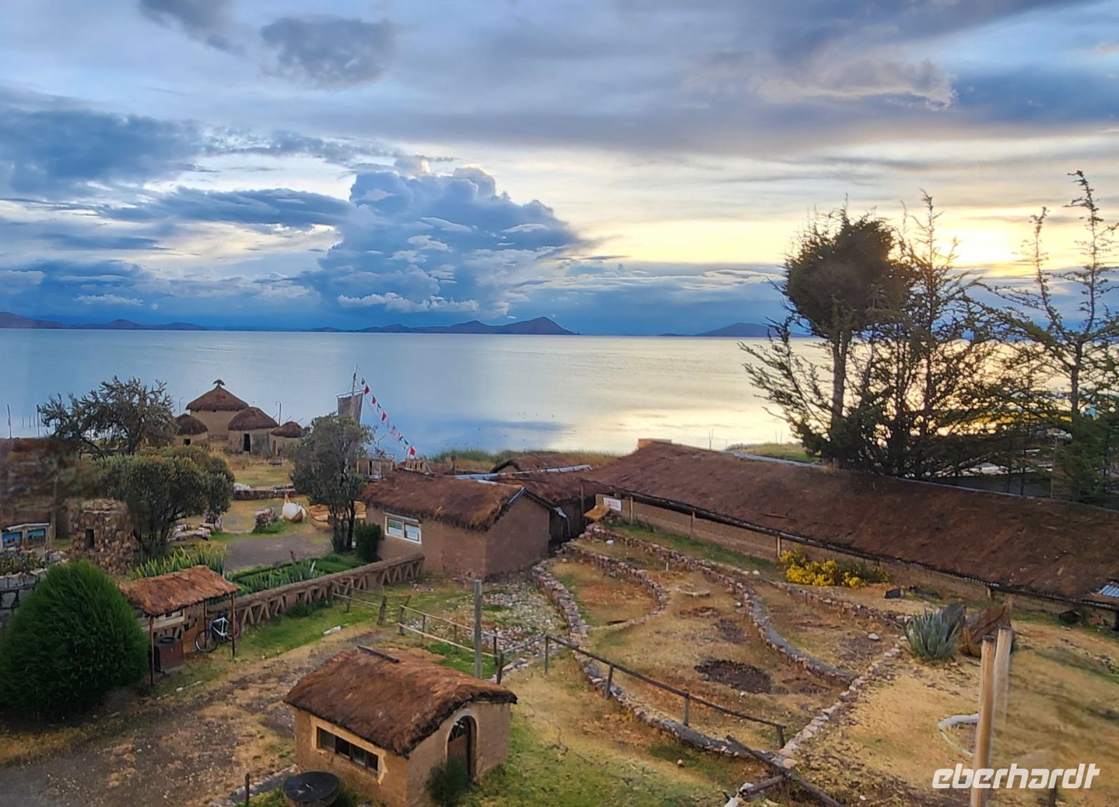 Es ist bereits dunkel, als wir am Ufer des Titicacasees ankommen. So sind wir gespannt auf den nächsten Morgen, welches Bild uns vom höchstgelegenen schiffbaren See der Welt erwarten wird.