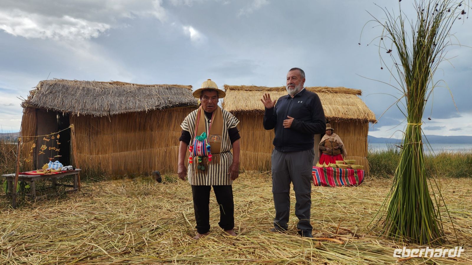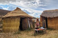 Am späten Nachmittag erreichen wir die weltberümten schwimmenden Inseln der Urus. Jahrhundertelang lebten die Menschen auf diesen Inseln, die komplett aus Schilf erbaut sind, die Inseln selbst, als auch die Hütten auf ihnen. Heute leben die Menschen hier nicht mehr, aber für die Touristen wurde dieser Ort nachgebaut, damit wir einen Eindruck von dieser einzigartigen Lebensweise bekommen können.