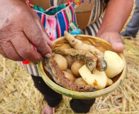 Zum Mittagessen haben wir gemeinsam etwas Typisches für das Land Peru gewählt. Wir essen alle zum ersten Mal in unserem Leben Meerschweinchen und/oder Alpaca!