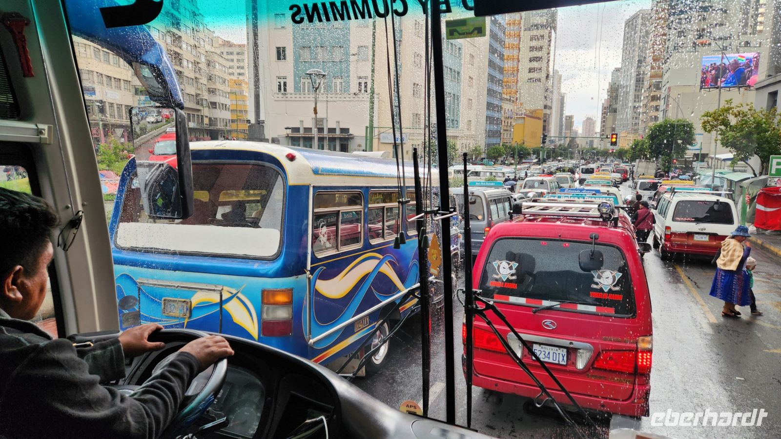 AmMorgen heisst es, schon wieder Abschied nehmen vom Titicacasee ... Die Hauptstadt Boliviens - La Paz ist unser nächstes Ziel. Nach wenigen Stunden erreichen wir zunächst El Alto, diese Stadt hat sich am Rande von La Paz entwickelt und ist mittlerweile viel größer als die Hauptstadt selbst. Viele Menschen vom Lande sind Richtung Stadt gezogen, in der Hoffnung, es würde ihnen dort besser gehen. Da La Paz bereits aus allen Nähten platzt, ist El Alto entstanden.