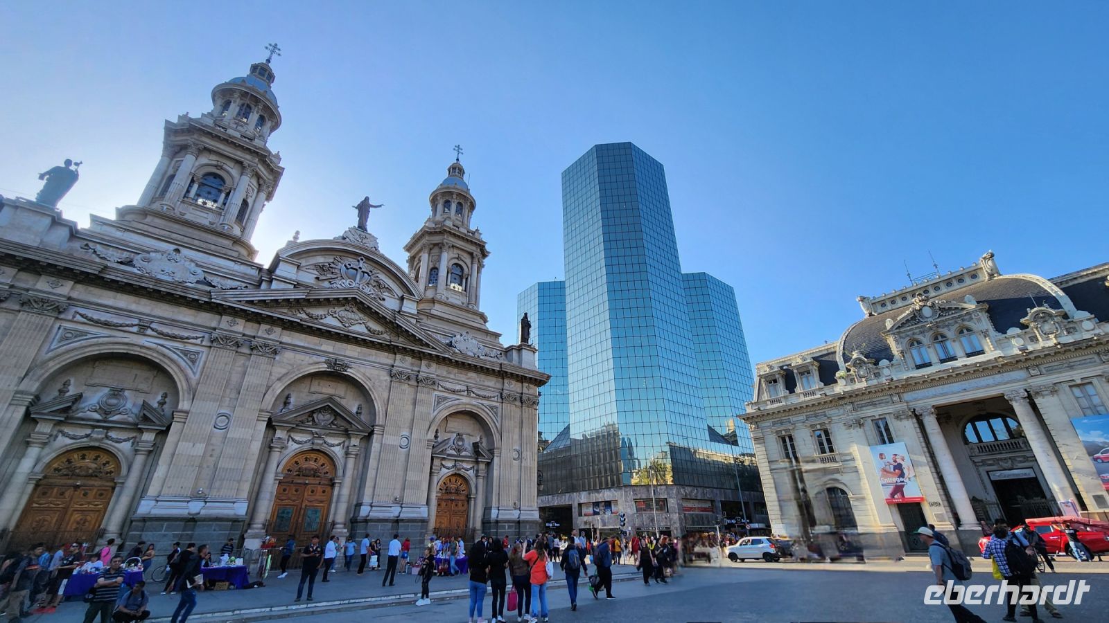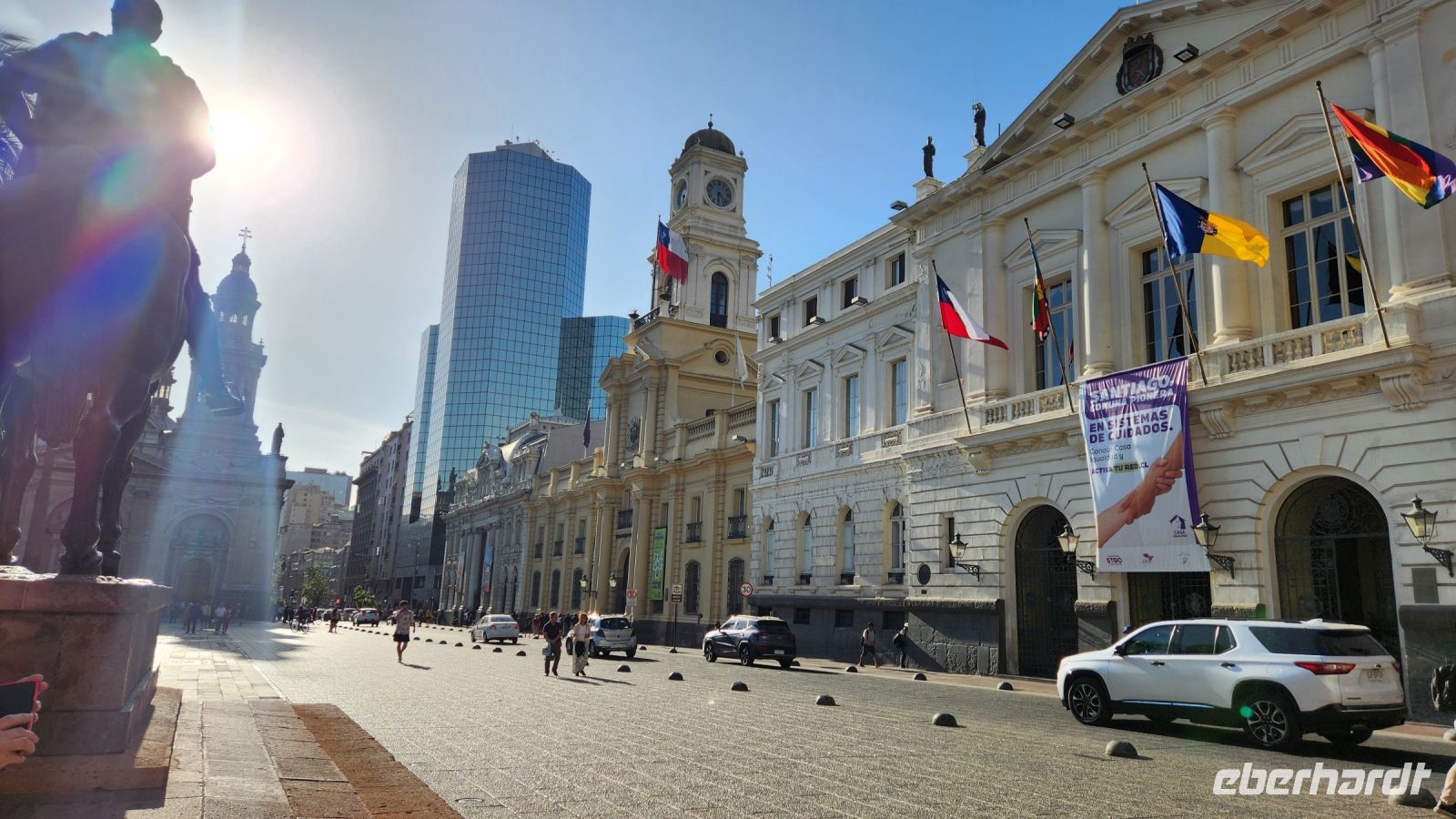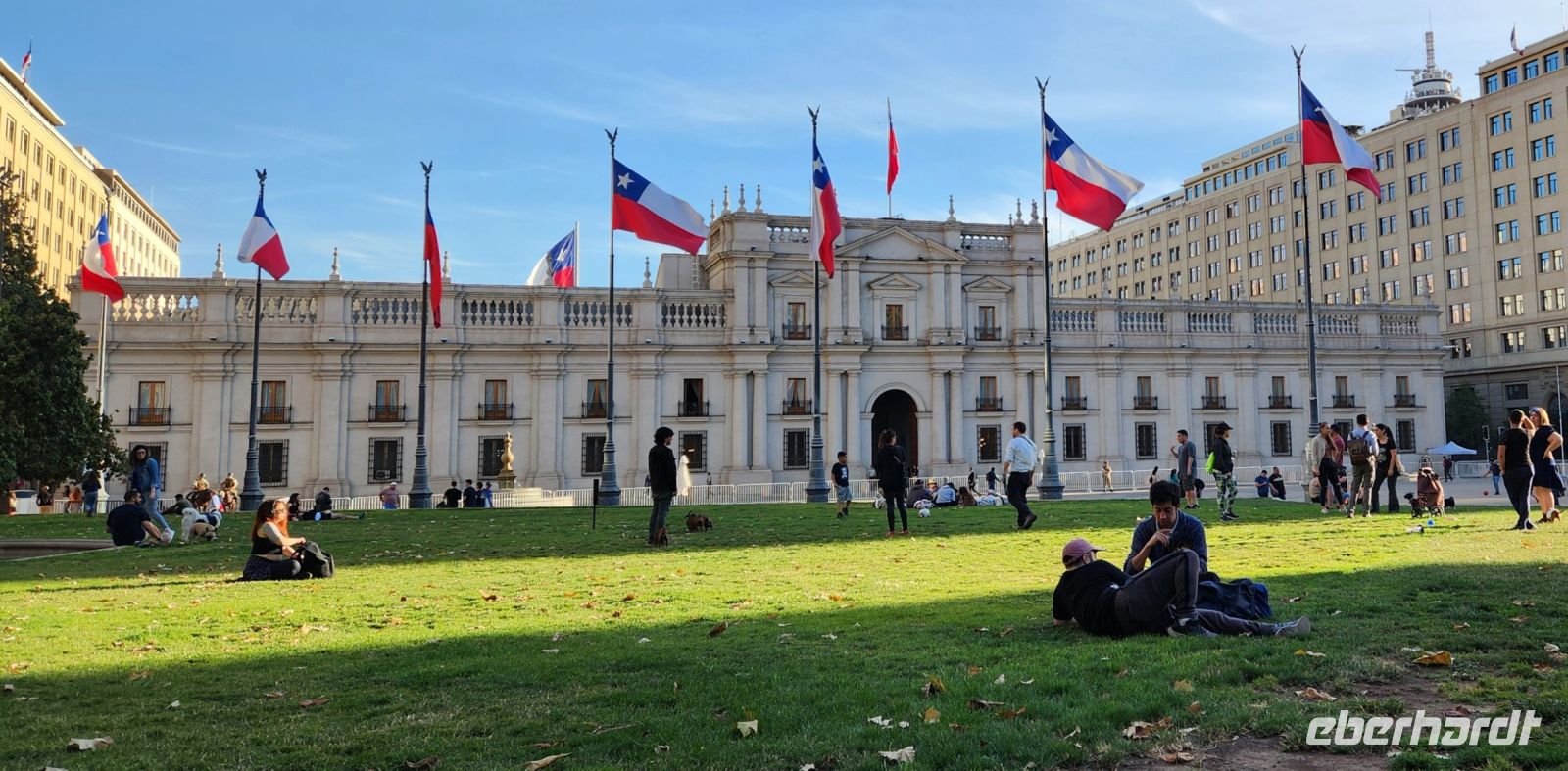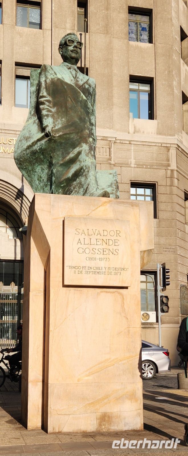 Wir sind etwas müde, da wir an diesem Morgen wirklich sehr früh aufstehen mussten. So entscheiden wir uns, erstmal eine kleine Pause einzulegen, in einem netten Lokal direkt an der Markthalle mit Empanadas. Anschließend geht es zu Fuß durch Santiago der Chile. Wir sehen das Bankenviertel, den Plaza de Armas, die Universität und den Präsidentenpalast La Moneda.