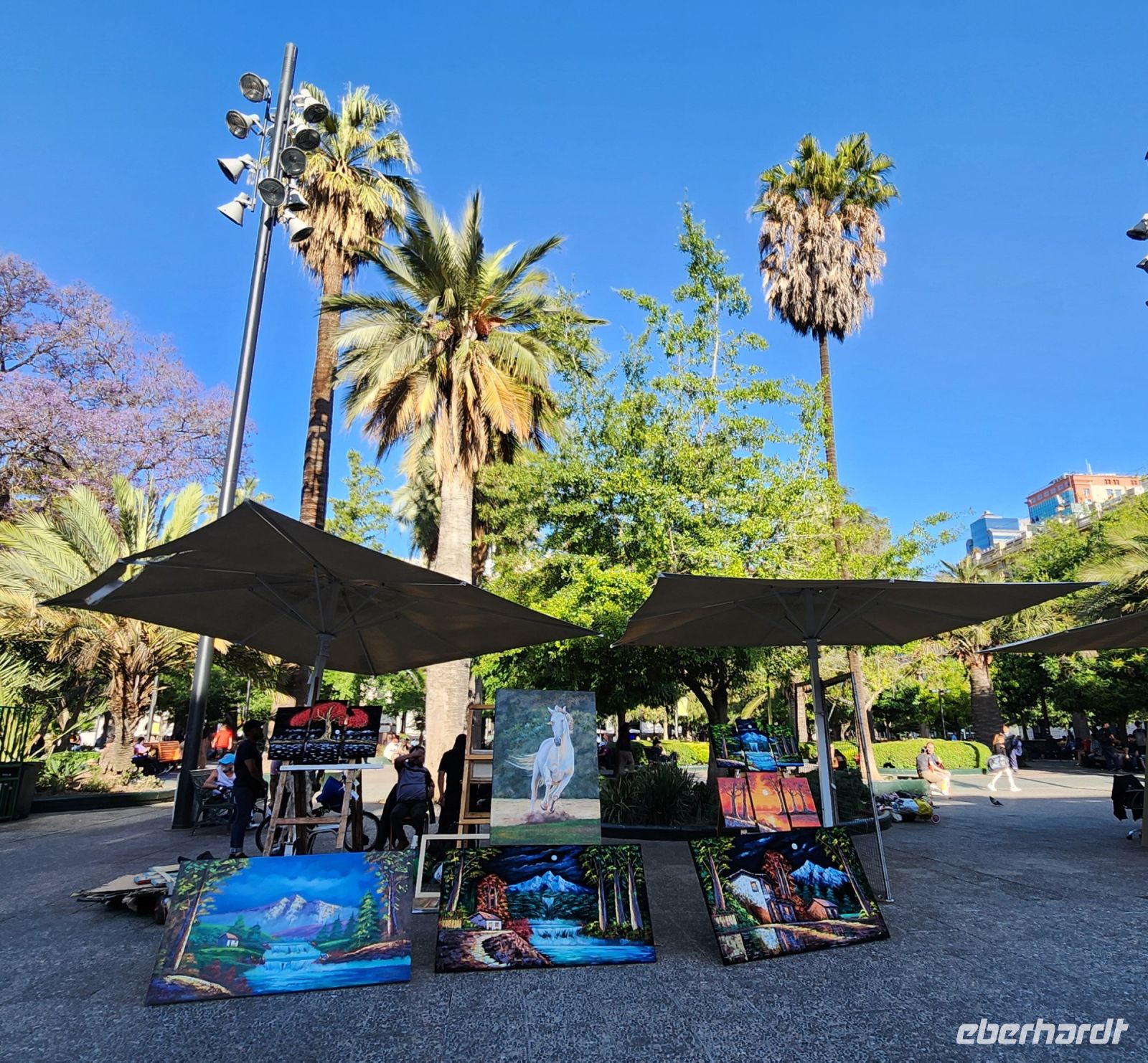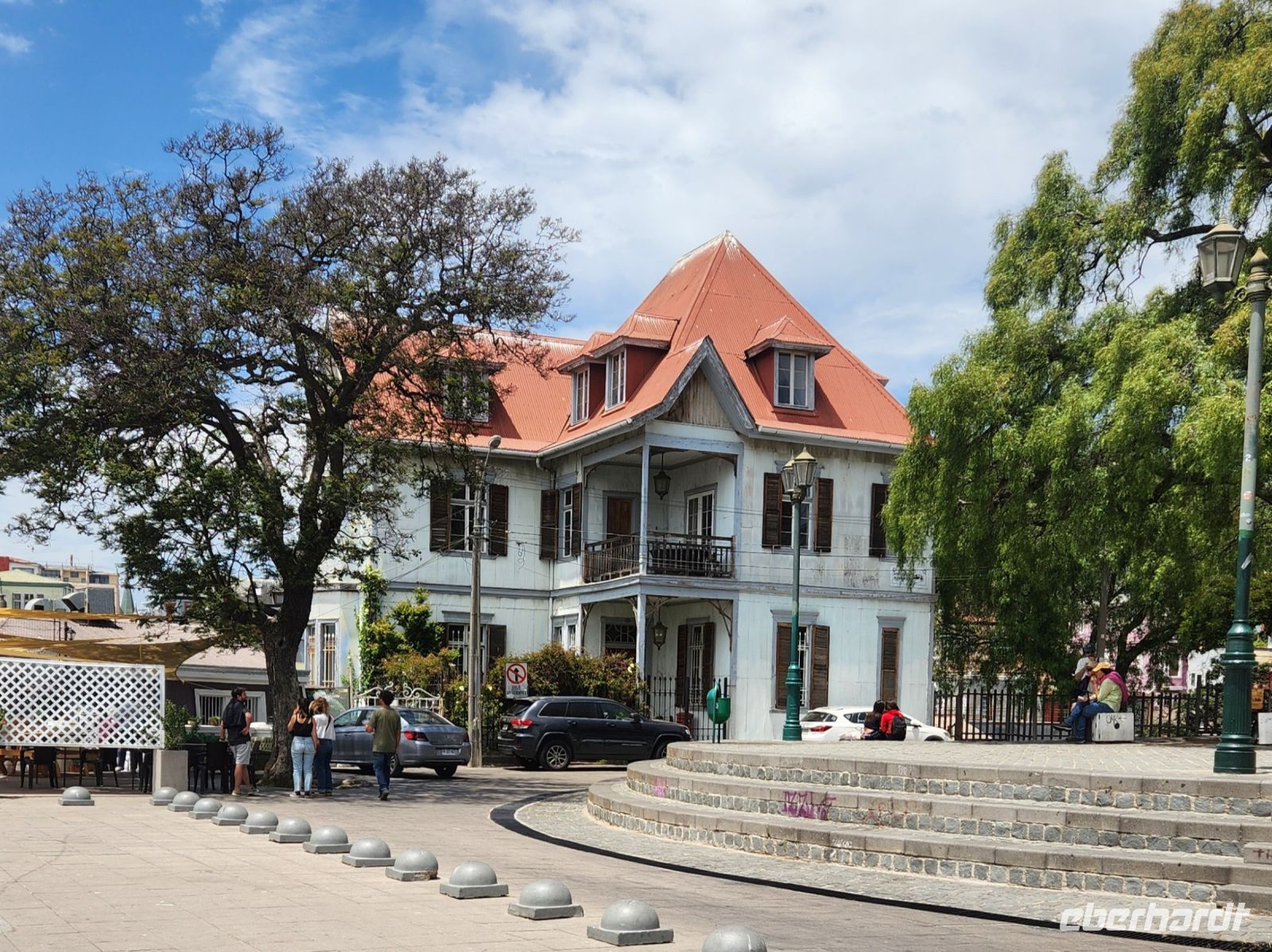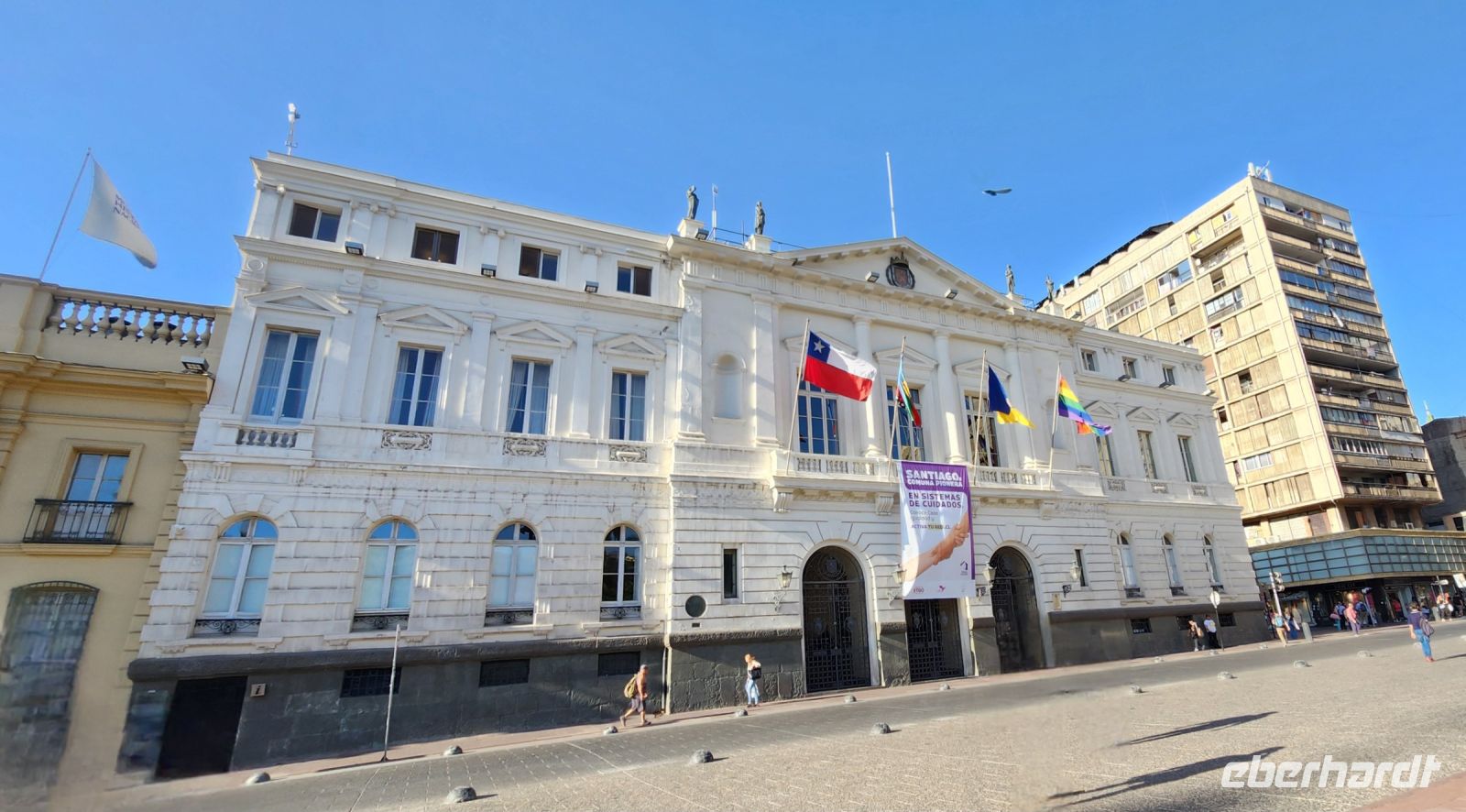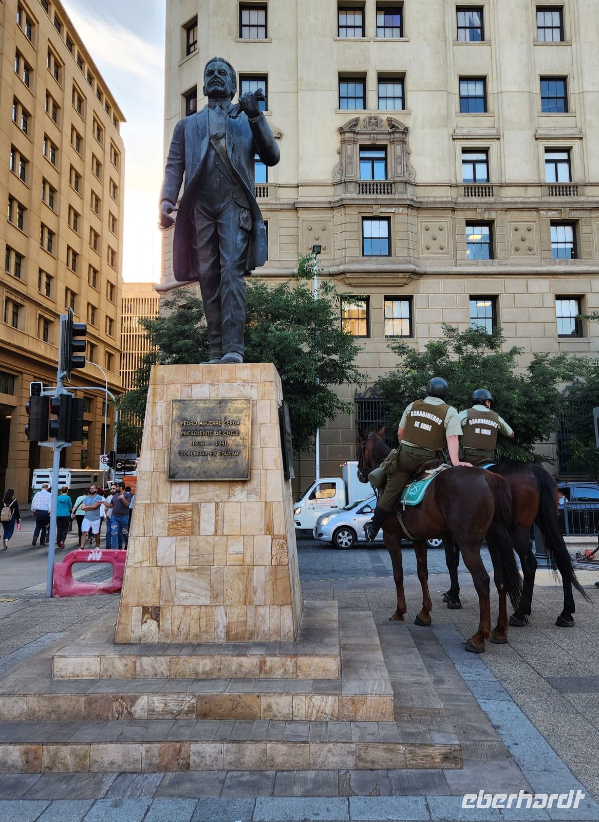 Wir sind etwas müde, da wir an diesem Morgen wirklich sehr früh aufstehen mussten. So entscheiden wir uns, erstmal eine kleine Pause einzulegen, in einem netten Lokal direkt an der Markthalle mit Empanadas. Anschließend geht es zu Fuß durch Santiago der Chile. Wir sehen das Bankenviertel, den Plaza de Armas, die Universität und den Präsidentenpalast La Moneda.