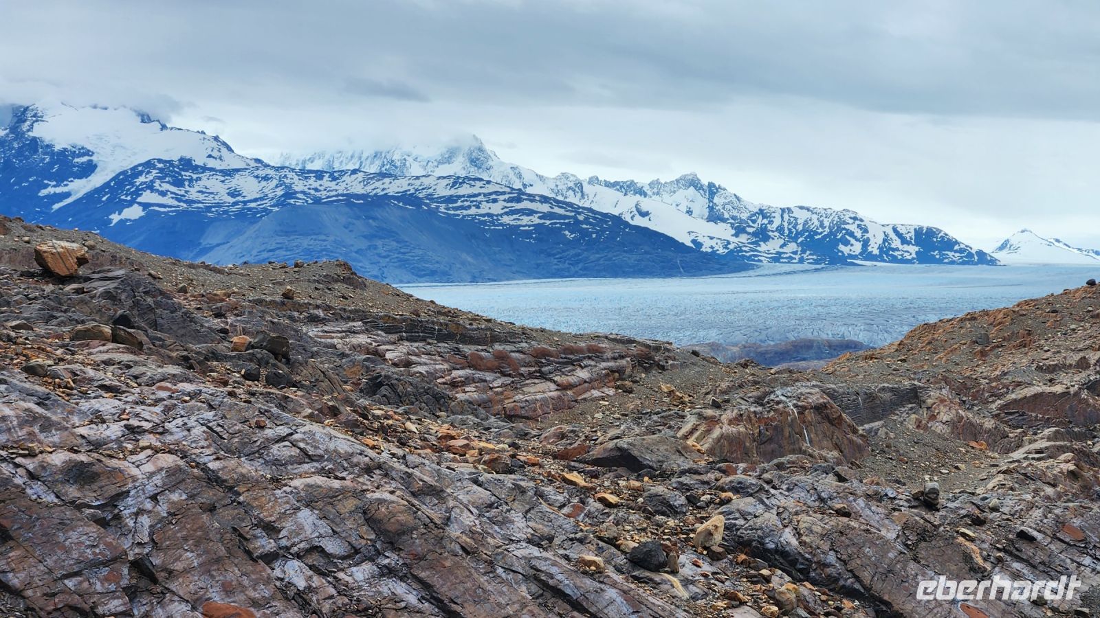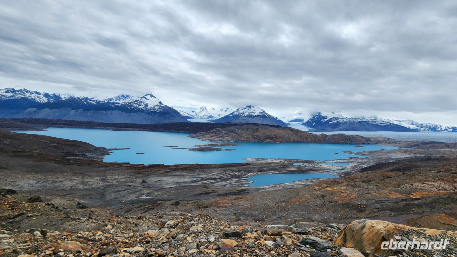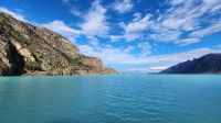 So sind wir gestärkt für eine abenteuerliche Jeep-Fahrt, es geht steil bergauf, manchmal auch wieder bergab über Schotterpisten bis zum Ausgangspunkt einer kleinen Wanderung. Nach 20 Minuten durch eine karge und steinige Berglandschaft liegt er vor uns ... der Upsala Gletscher. Wir dachten, wir würden näher an ihn herankommen, aber zwichen uns und dem Gletscher liegt ein See in einem unbeschreiblich schönen Türkis, mehr geht nicht, wir sind zutiefst beeindruckt.