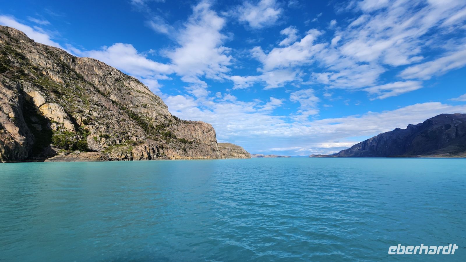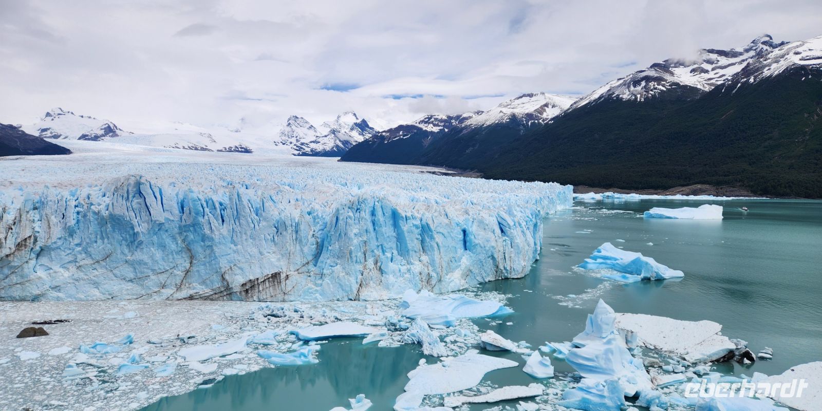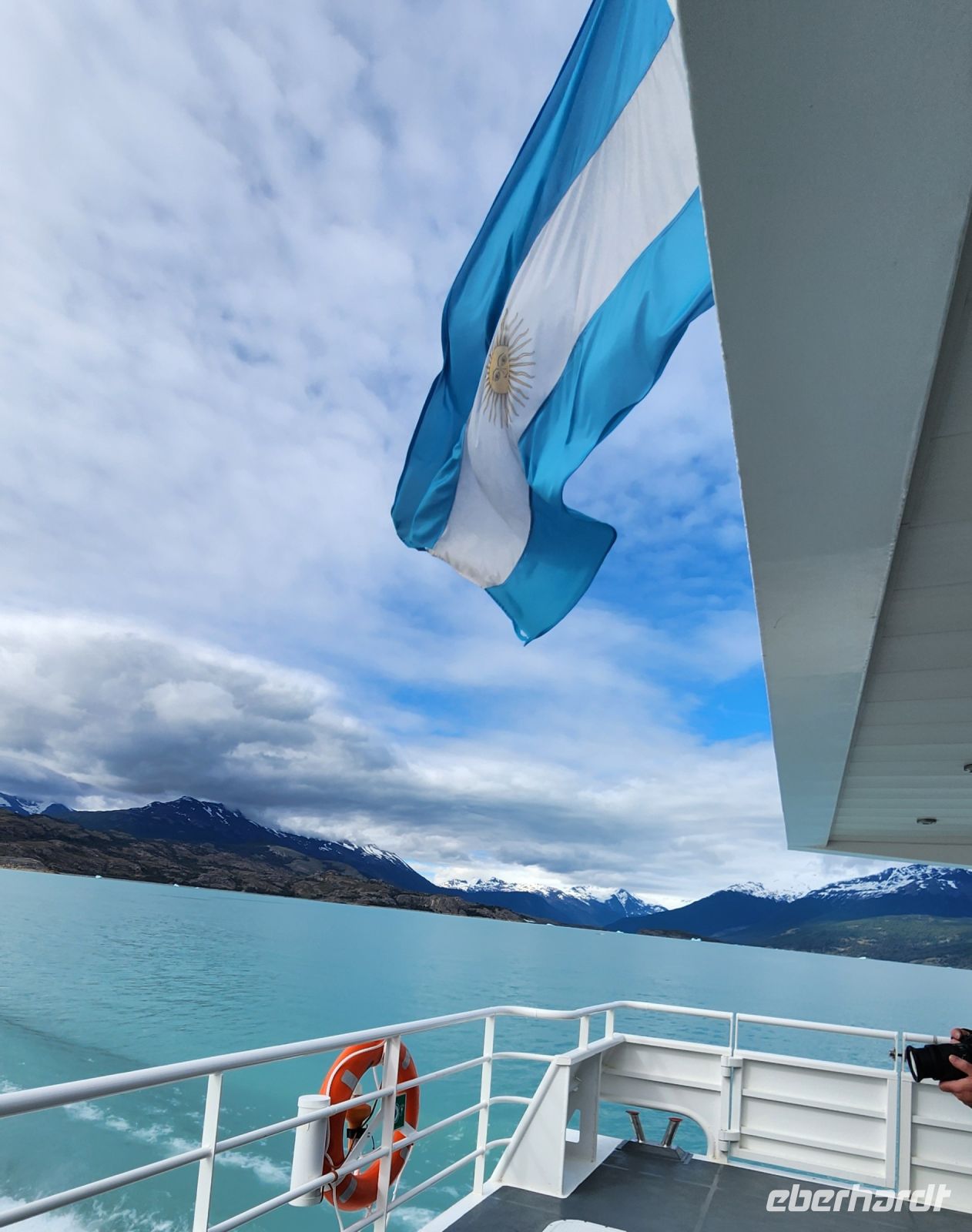 Eine gutgelaunte Crew empfängt uns auf einem Katamaran, der uns über den Lago Argentino so nah wie möglich an den größten Gletscher des Los Glaciares Nationalparks bringen wird, dem Upsala Gletscher. Auf dem Weg zum Gletscher machen wir Fotostopps an kleinen Eisbergen, bevor wir den Upsala Gletscher erreichen, aus wenigen Hundert Metern Entfernung sehen wir dann die Hauptfront majestätisch vor uns liegen.