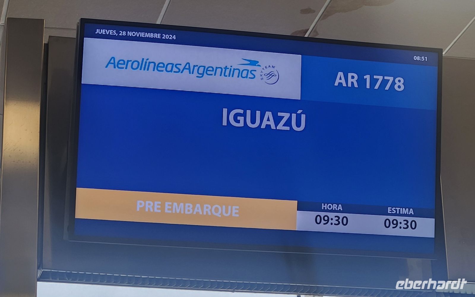 Auch heute wieder...zeitiges Frühstück und denn zum Flughafen! Wir fliegen von der argentinischen Hauptstadt nach Iguazu!