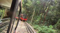 Wir fahren an den Fuße des Corcovado und steigen hier in eine Schmalspurbahn, die uns gemütlich fast bis zum Gipfel bringen wird.