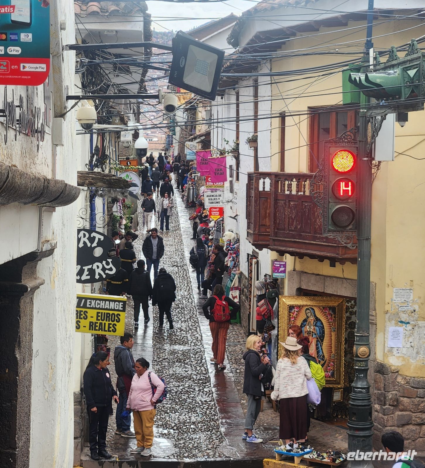 Da es stark regnet, entscheiden sich die meisten dafür unten im Dorf zu bleiben und nicht die vielen berühmten Stufen der Burg hinauf zu laufen.