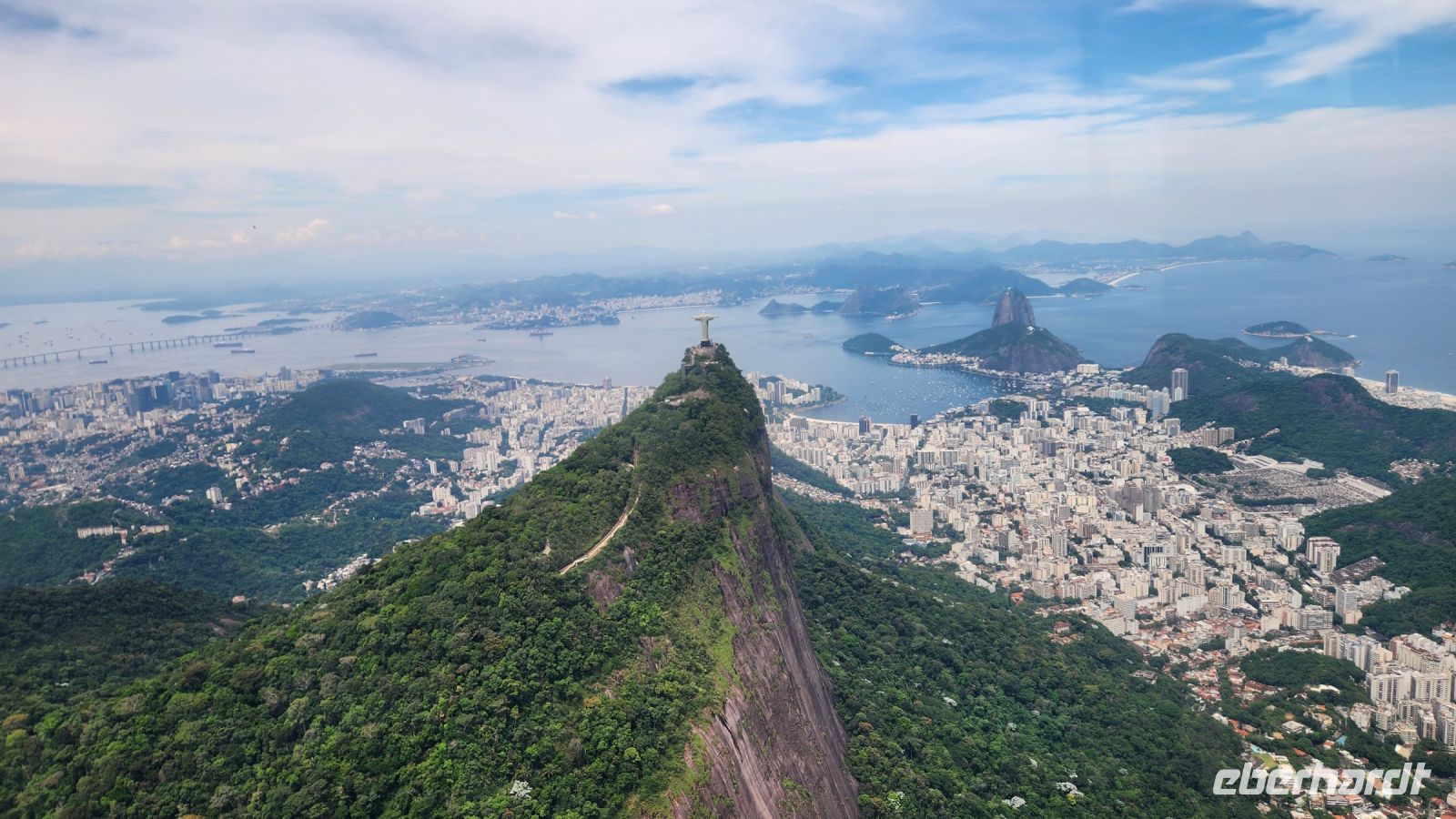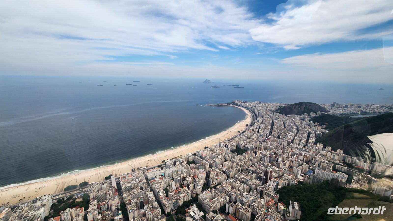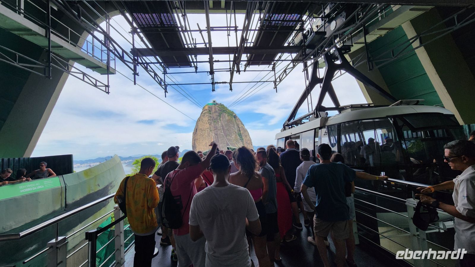 Es ist schönes Wetter, nur wenige Wolken sind am Himmel! Welch ein Glück für uns. Mit zwei Seilbahnen fahren wir auf den Zuckerhut! Aus 400 m Höhe haben wir einen sagenhaften Rundblick über Rio de Janeiro.