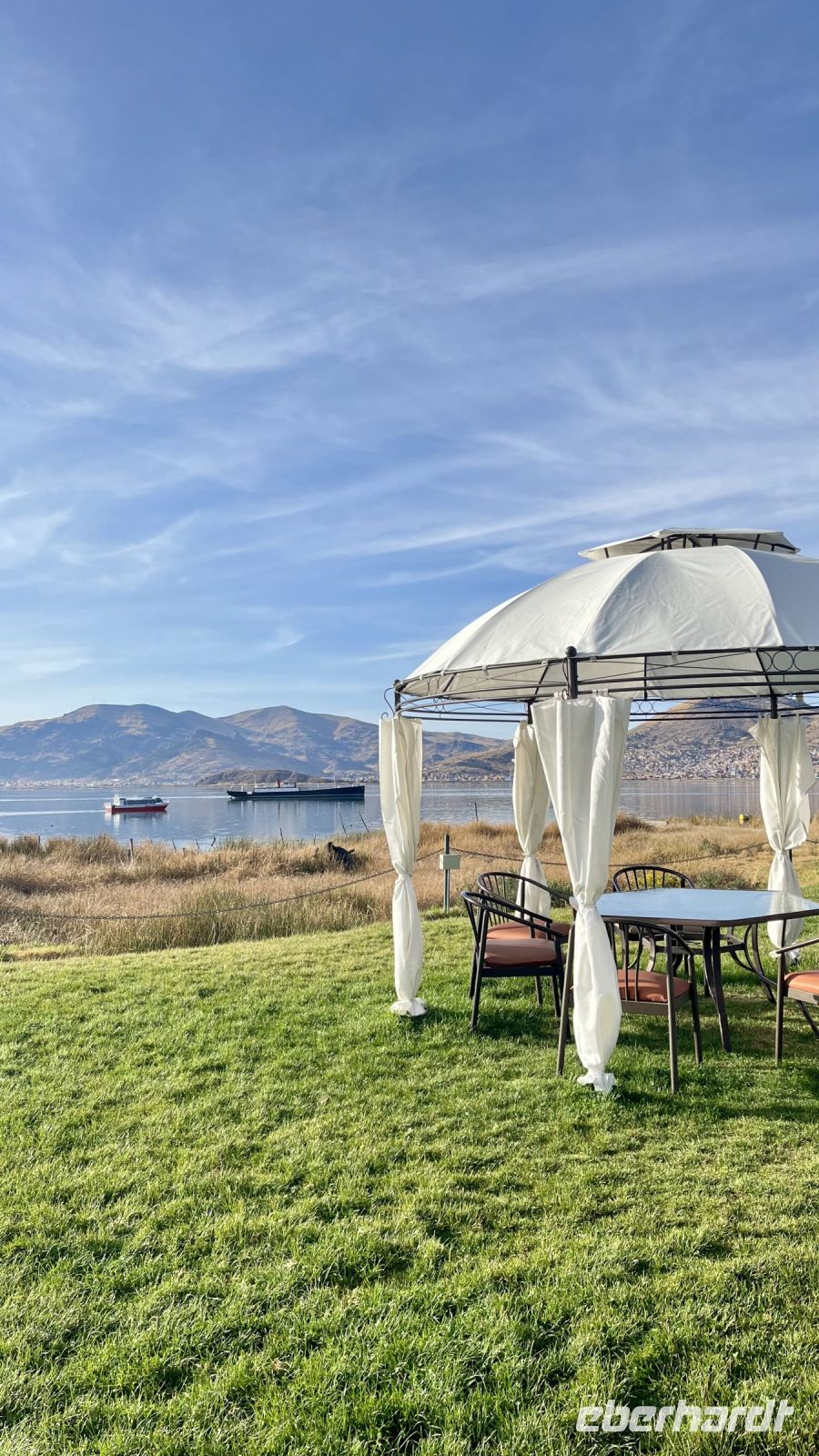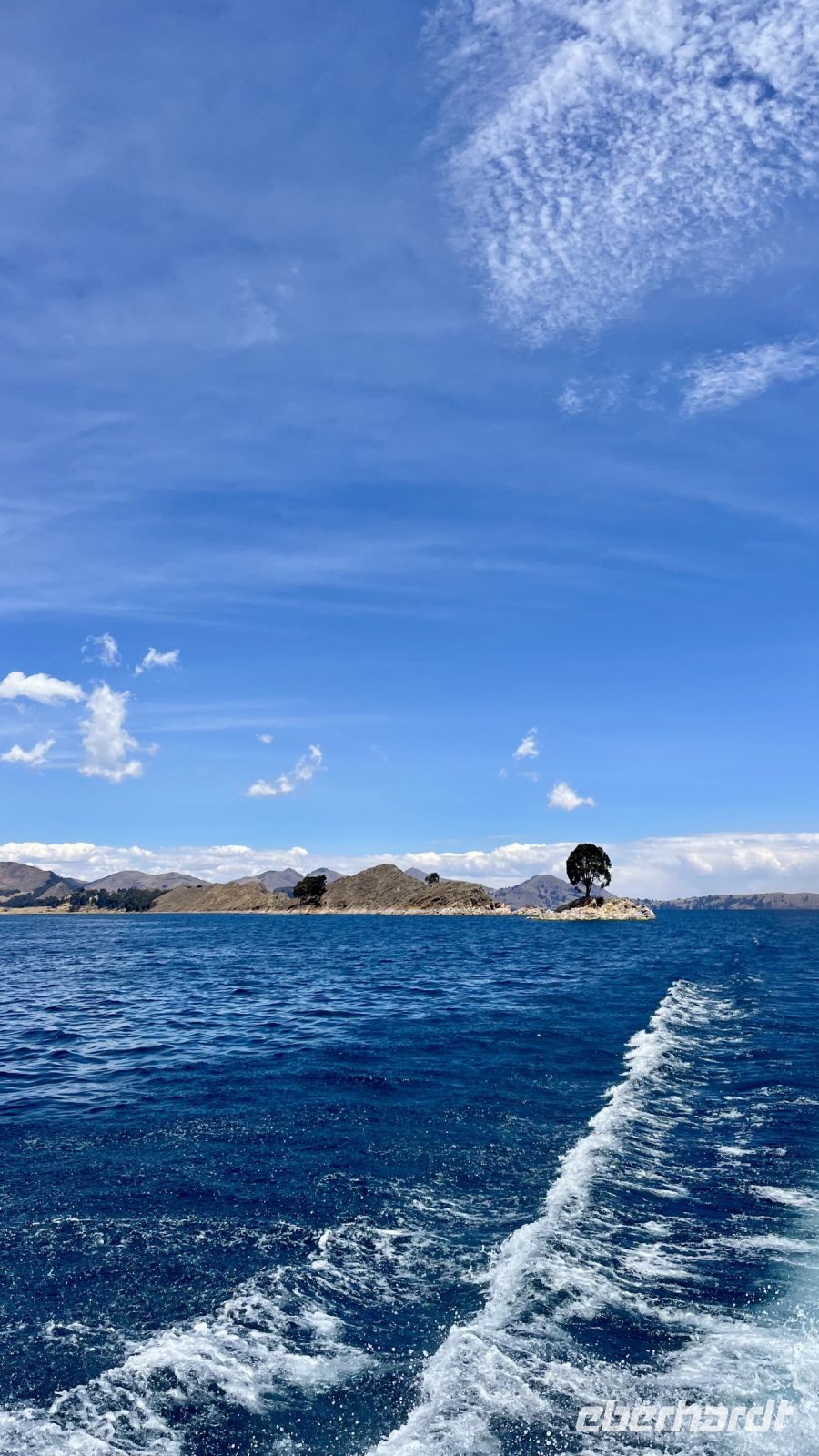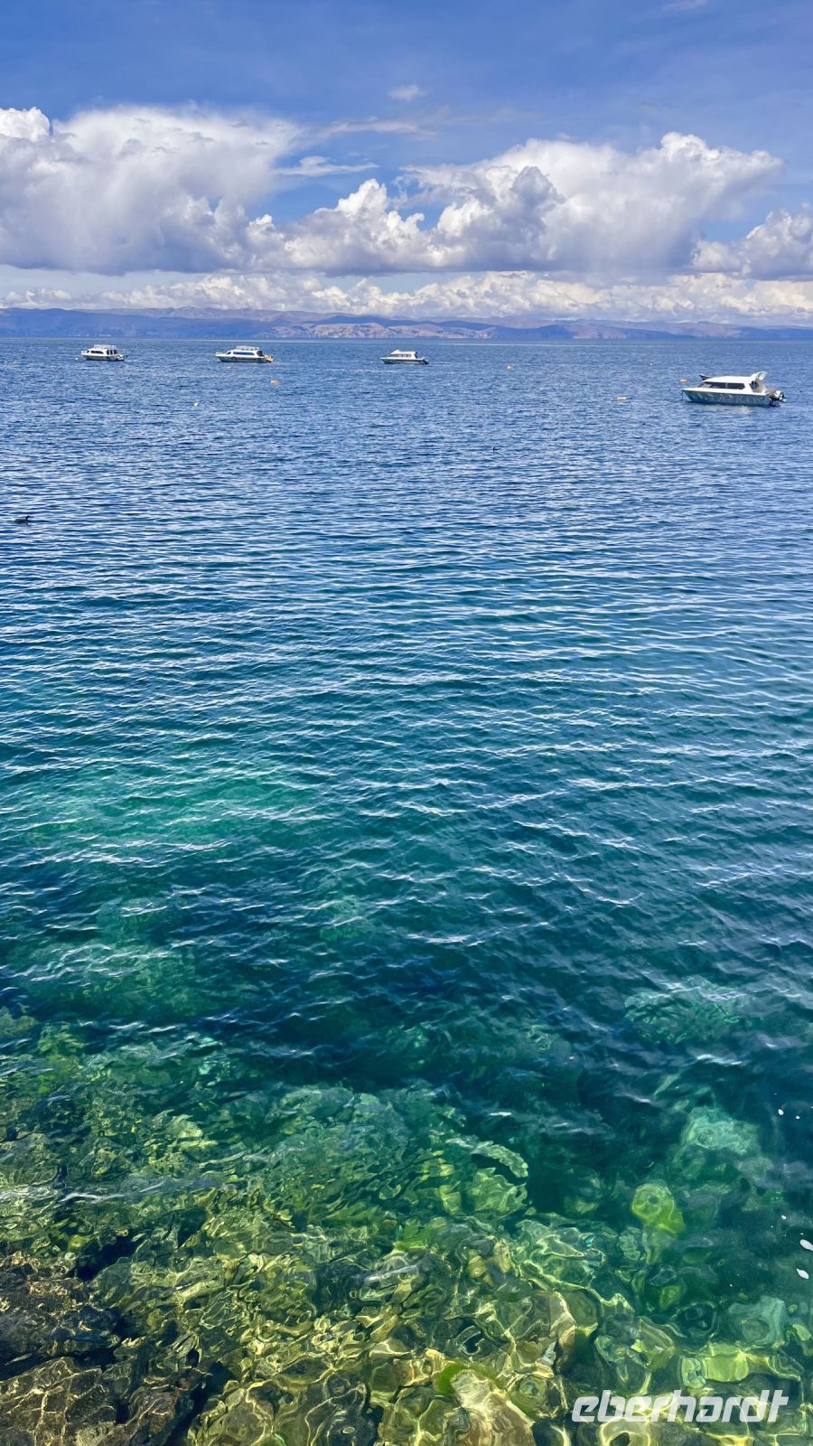 Bevor wir die Insel verließen, wurden wir noch einmal mit einem heiligen Wasser getauft, das uns um einige Jahre verjüngen sollte. Somit konnten wir wie ausgelassene Grundschüler eine Pause auf der Insel des Mondes machen, die uns ebenfalls begeistern sollte.