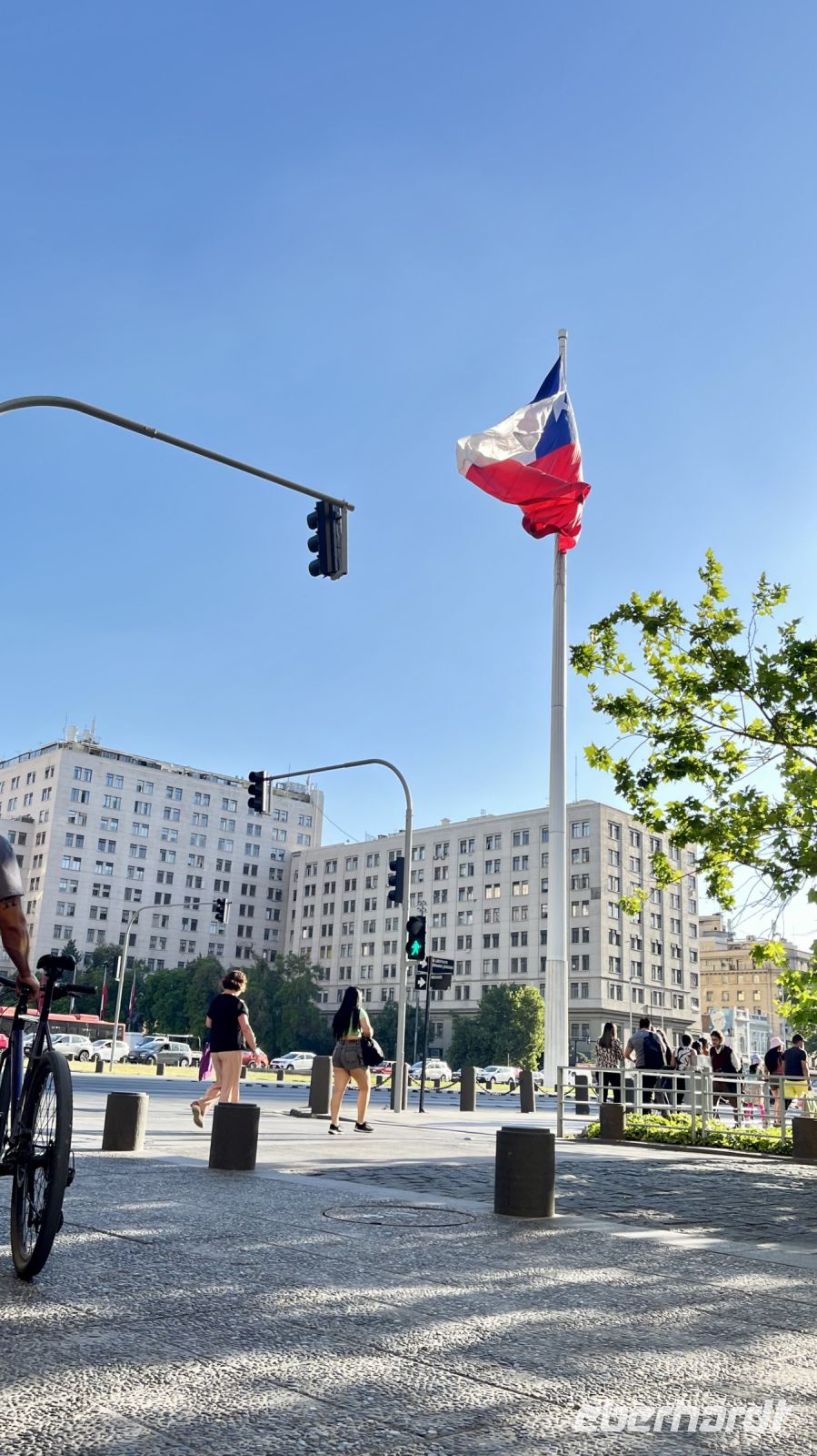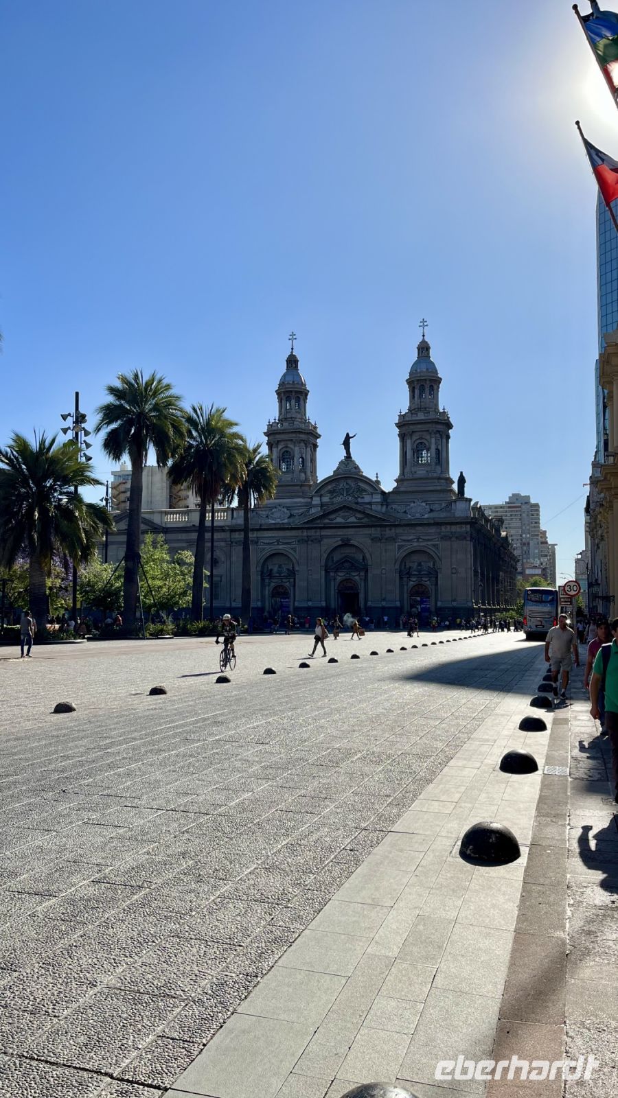 Ein Großteil des Tages wurde zwischen Flügen und Flughäfen verbracht. Diejenigen, die wach blieben, konnten vom Fenster aus, ein besonderes Spektakel genießen. In Santiago angekommen, muss man sich vergegenwärtigen, dass Chile wie eine langgestreckte Insel ist, mit dem weiten Ozean auf der einen Seite und dem imposanten Andengebirge auf der anderen. Deshalb gehen die Chilenen auch so sorgsam mit ihrer Flora und Fauna um. Das kleine Versehen eines Apfels im Gepäck kann schnell zu einer etwas ärgerlichen Erfahrung werden... aber Vergangenheit ist Vergangenheit und die Erfahrung auch. Es dauerte etwas länger als geplant, aber schließlich überwanden wir das, auch mit Hilfe von ein paar beruhigenden Schlucken Wasser. Wir machten uns sofort auf den Weg ins historische Zentrum von Santiago, bereit, die Straßen zu erkunden und die Architektur zu bewundern, die uns in diesem Moment aufgrund ihres starken europäischen Einflusses vertraut vorkam. Der Tag neigte sich dem Ende zu und machte der Nacht Platz, und dieser erste Tag in Chile würde nicht enden, ohne dass wir unseren Hunger und Durst in einem der vielen Restaurants mit einem breiten und schmackhaften gastronomischen Angebot gestillt hätten.