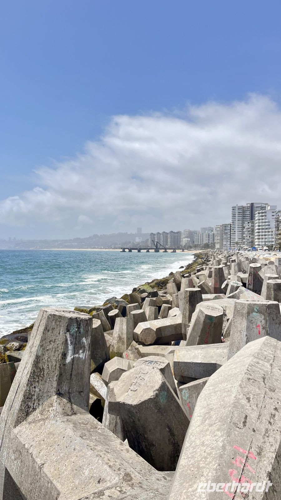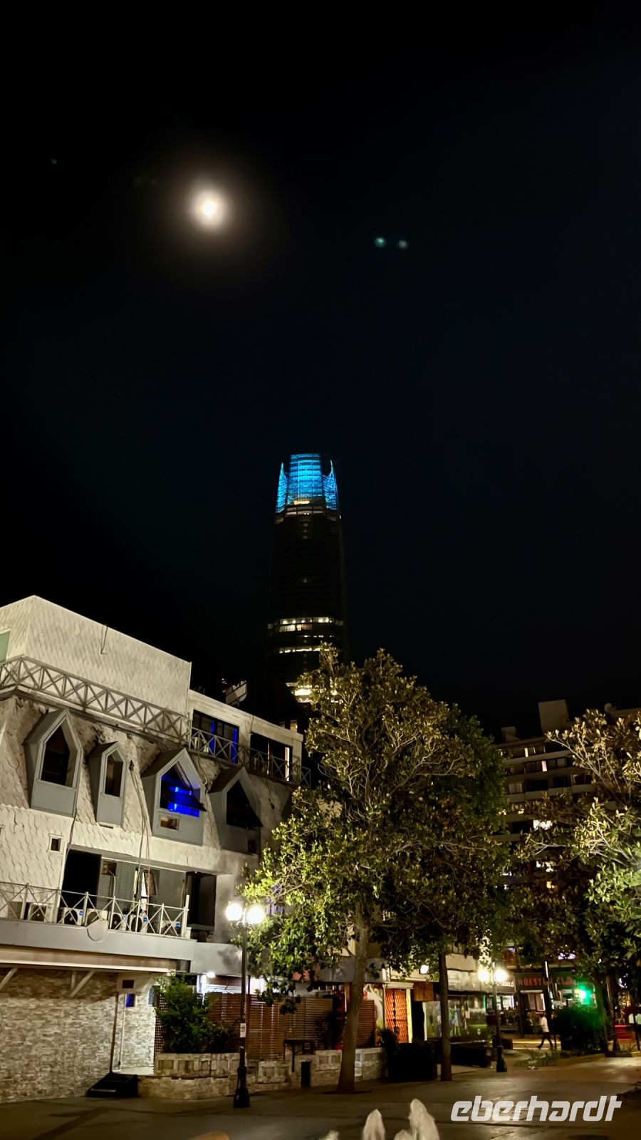 Als wir die Stadt fast am Stadtrand verließen, besuchten wir die Werft „Portales“. Ein einzigartiger Ort, sehr gut bewacht von Riesen aus Fleisch und Blut, echten Meeresbewohnern von immenser Größe... es sind die Seelöwen, die das Meer, den Sand... und die Fische genießen. Ebenso wie ihre Kollegen am Himmel, die riesigen Pelikane, die ebenfalls gerne Fische verschlingen. Bevor wir abreisten, machten wir einen Spaziergang in Valparaiso und von dort aus nach Santiago. Auf dem Rückweg beschlossen wir, einen letzten Blick auf die Stadt zu werfen, bevor sie von den Schatten der Nacht verdeckt wurde. Diesmal von der Spitze des „Sky Costanera“-Turms, dem höchsten in Südamerika.