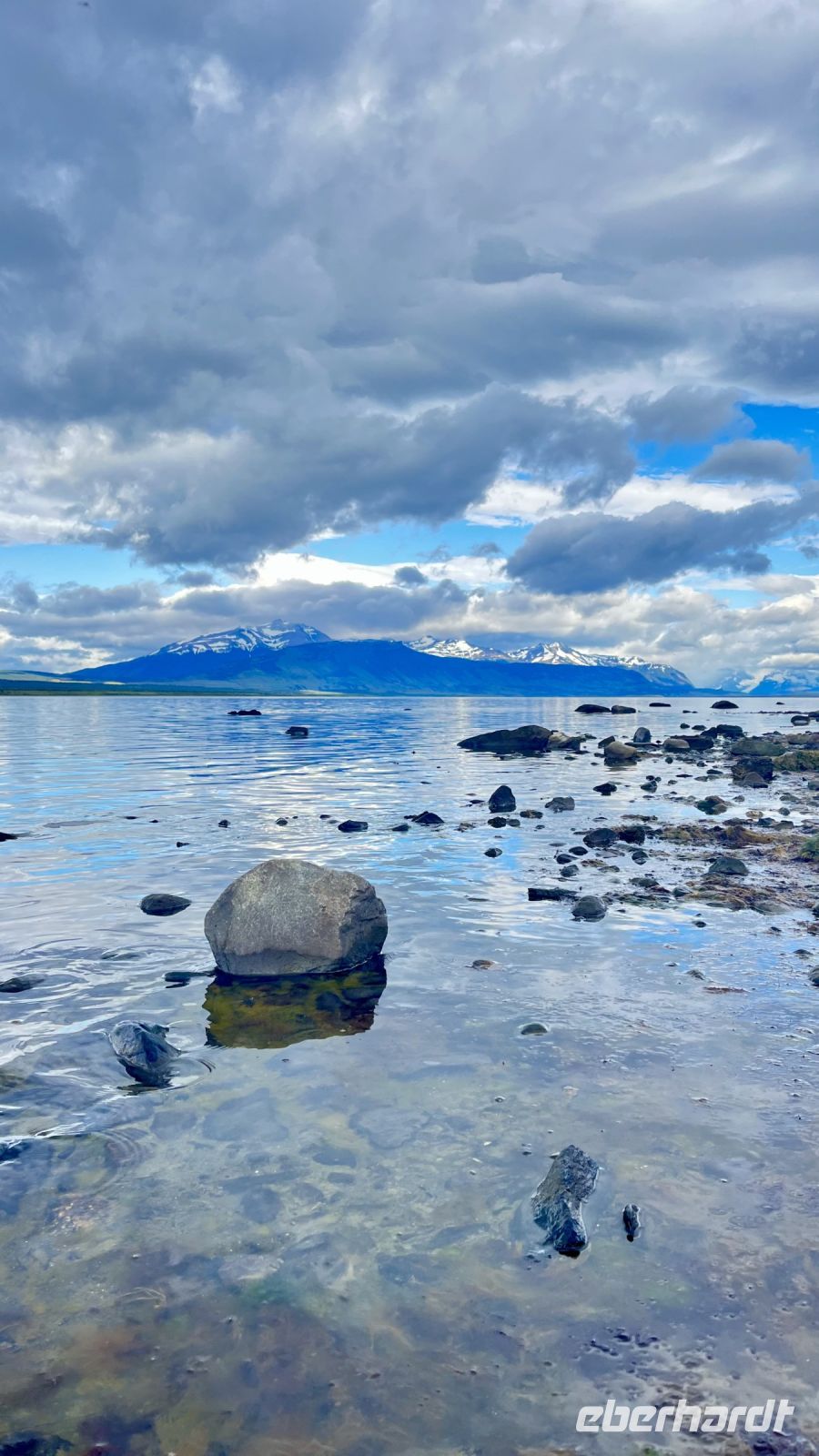 Unsere Schifffahrt war ein Privileg der Lichter, der Schatten und sogar der Spiegelungen, der intensiven Farben und der kontrastreichen Texturen, die eine Flutwelle von Emotionen in unserem Inneren hervorriefen. Alles war so fern und nah, so lebendig und intensiv zugleich, dass es uns wie ein Traum vorkam, aber wir waren wach und unsere Augen versicherten uns, dass es real ist und kein flüchtiger Blitz. Schneebedeckte Gipfel, Gletscher, tiefe Meere, ewige Fjorde, souveräne Felsen, es gibt alles unter diesem wunderschönen Himmel. Die Brise streichelte uns, die Sonne wiegte uns in den Schlaf, wir versuchten, wach zu bleiben, ohne zu wissen, ob wir wirklich schliefen.