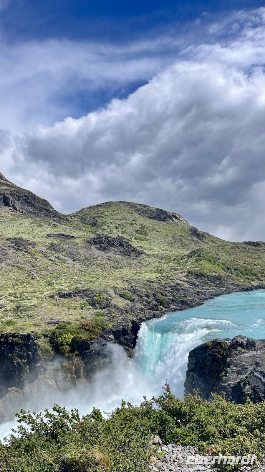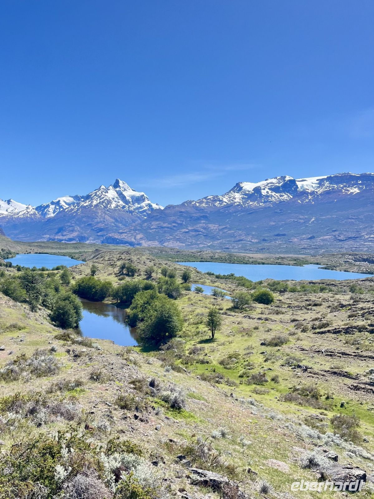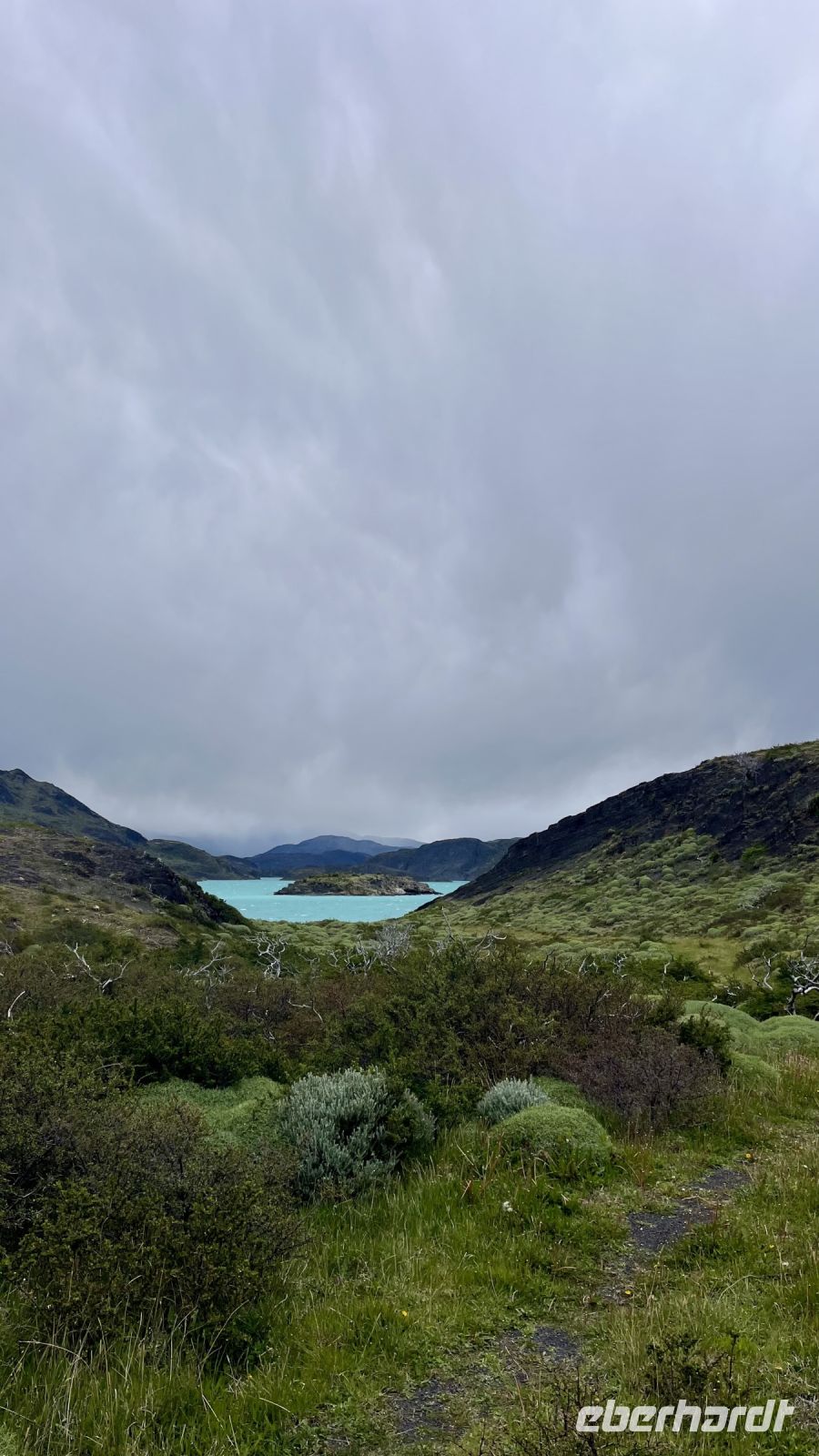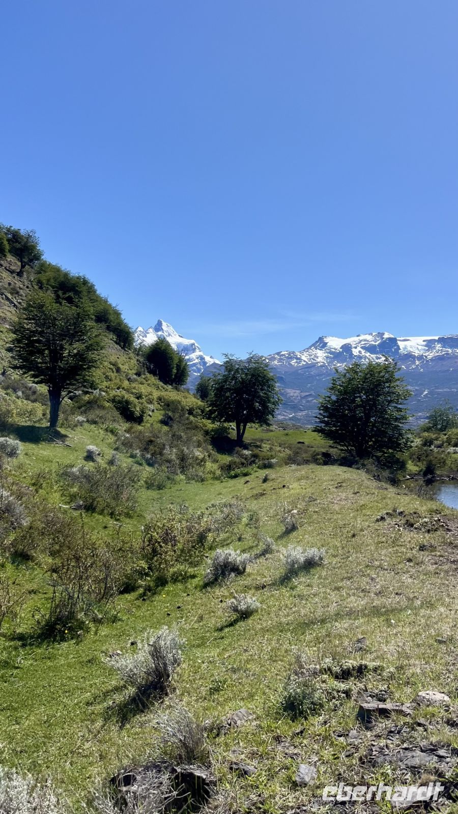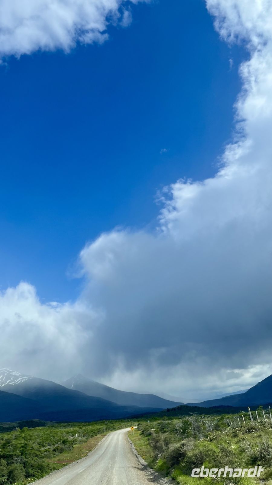 Es folgte eine Reihe von Landschaften, von denen jede einzelne eines Aquarells würdig war, bevor wir zu dem Bild gelangten, was zu einem Meisterwerk werden sollte: dem Nationalpark Torres del Paine. Dort fanden wir Flüsse, Seen, Wasserfälle und Berge von großer Schönheit, so schön, wie der Wind stark und die Brise frisch waren. Und als ob das alles noch nicht genug wäre, bot sich uns am Aussichtspunkt Los Cuernos ein Postkartenblick.