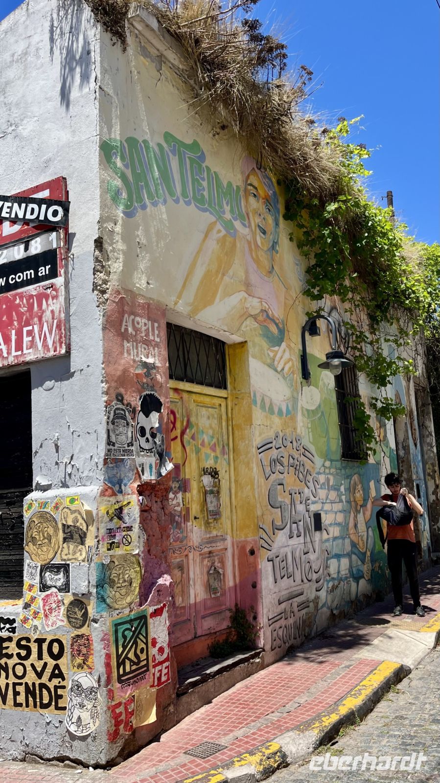 Aber zu diesem Zeitpunkt blieb noch viel zu sehen, Buenos Aires ist groß und vielfältig, im wahrsten Sinne des Wortes. Also setzten wir unsere Tour fort, diesmal im Bohème-Viertel San Telmo. Dort ist der Markt einer der auffälligsten Orte, mit einer abwechslungsreichen Gastronomie, bei der der gute Geschmack der gemeinsame Nenner ist. Wir verloren uns in diesem kleinen Labyrinth aus Restaurants, Antiquitätenläden, Handwerksbetrieben und lokalen Produkten. Einige von uns erlagen der Versuchung, etwas Kleines zum Essen zu kaufen, andere ein Souvenir oder ein Geschenk zum Mitnehmen. Wir spazierten weiter durch das Barrio und entdeckten noch ein paar Straßen, bevor wir wieder in den Bus stiegen und von dort aus Buenos Aires weiter erkundeten. Wir besuchten Stadtteile wie Retiro, Palermo und schließlich Recoleta mit seinem besonderen Friedhof, der einen Besuch wert war.