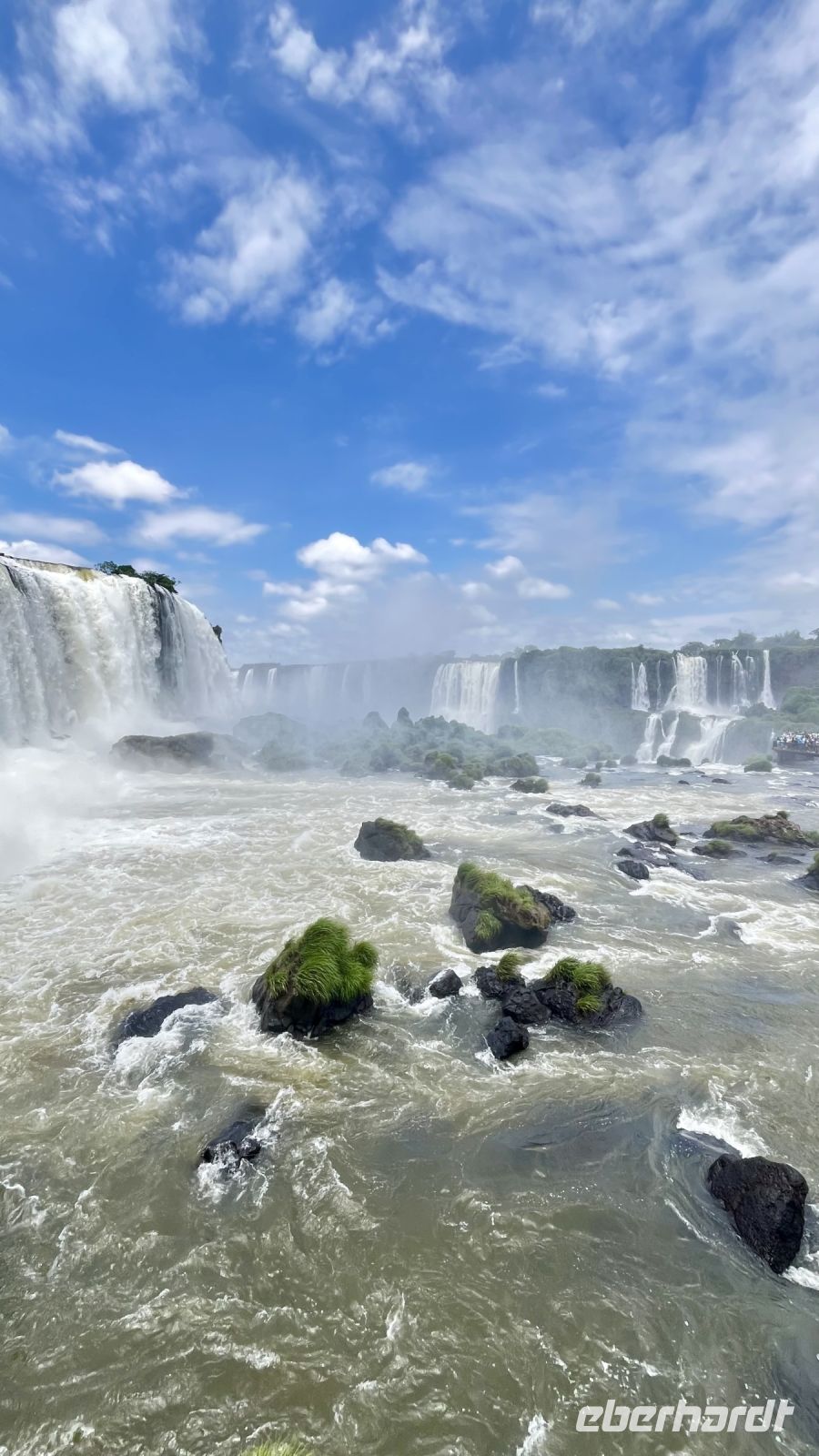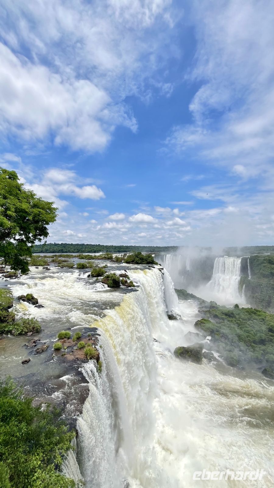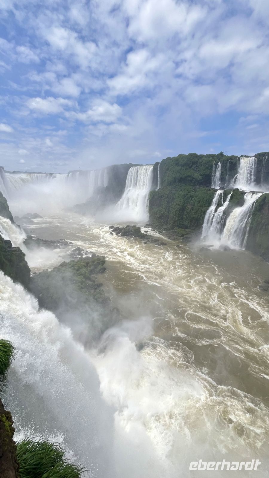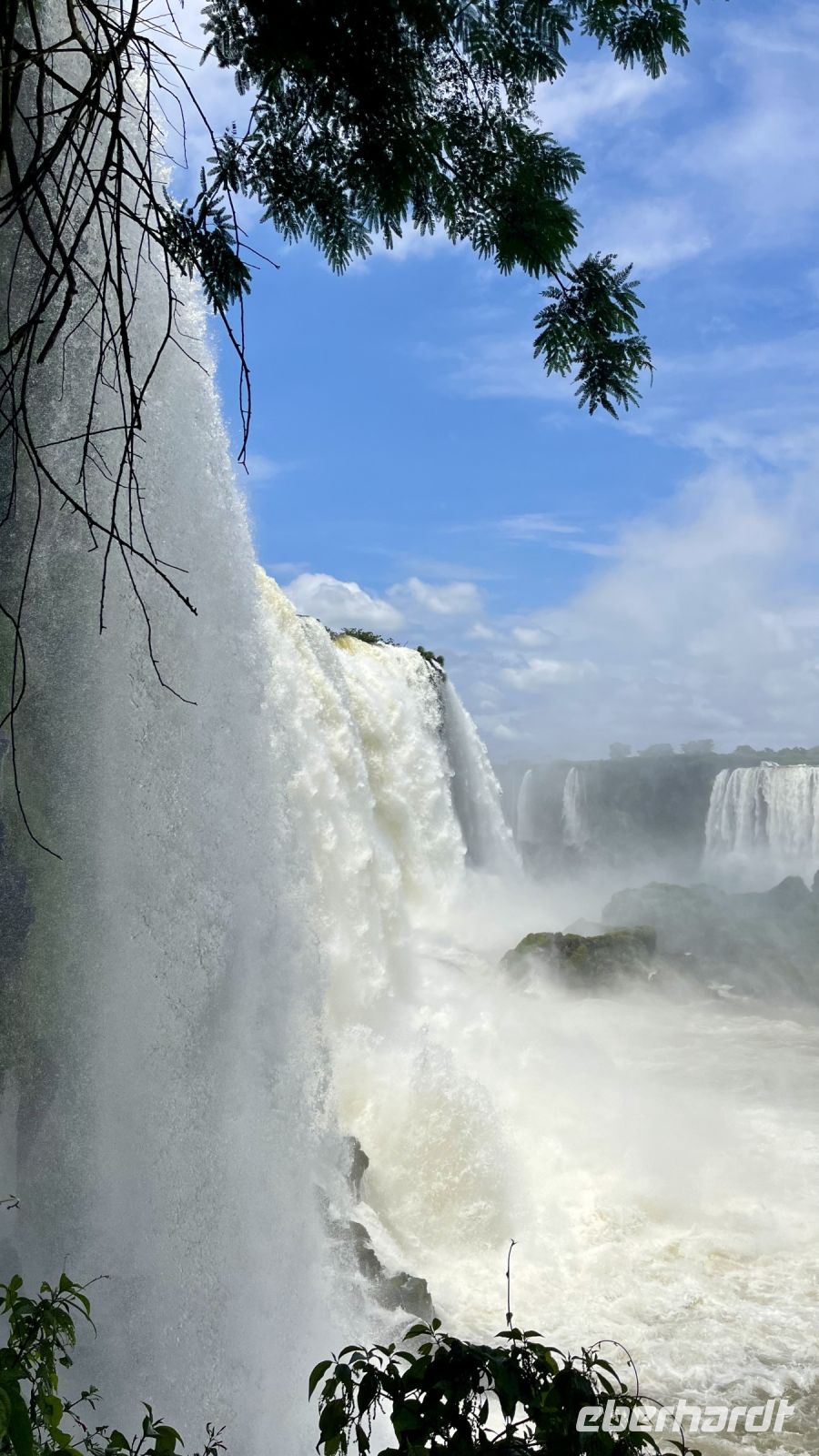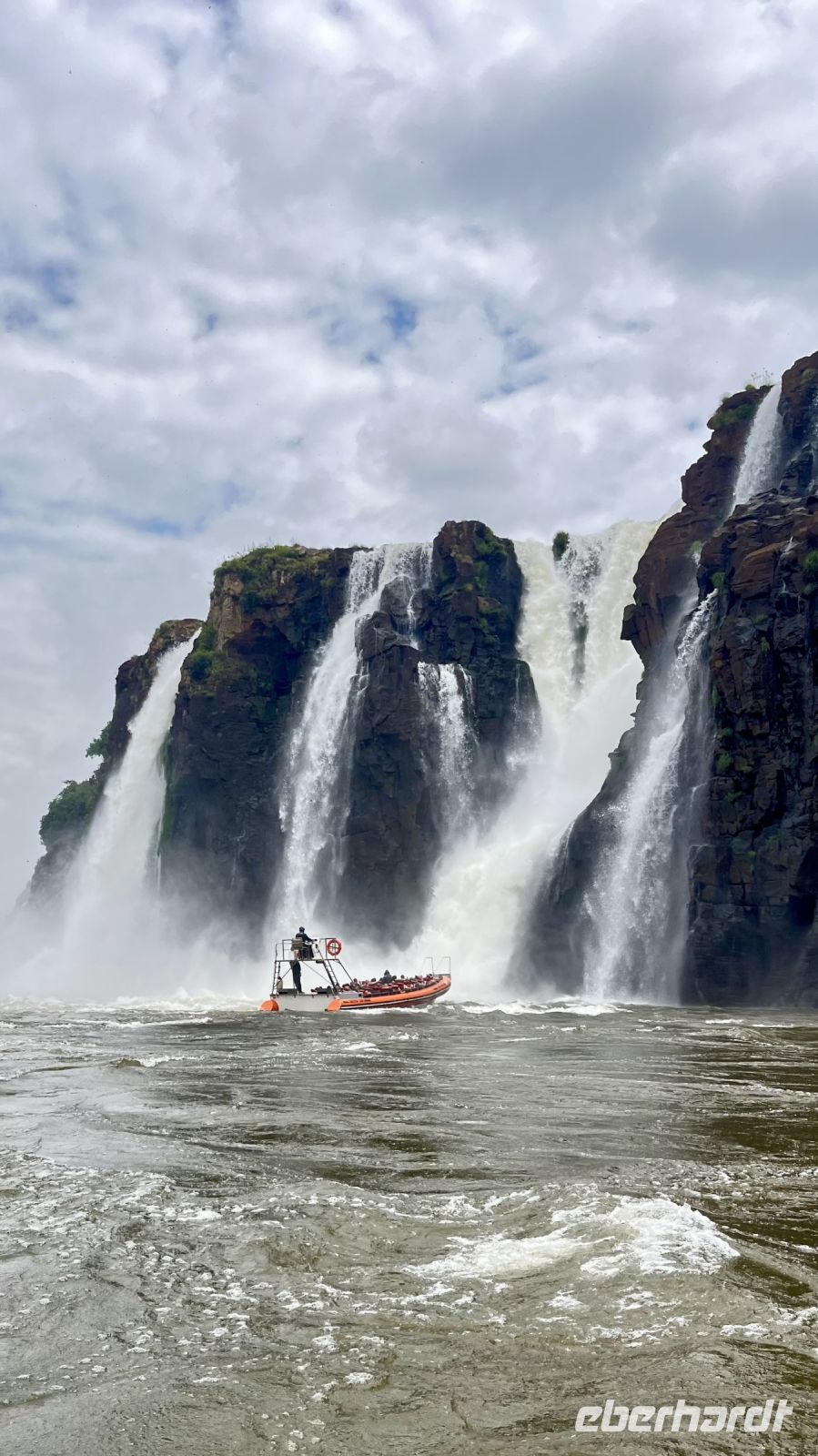 Dann ging es weiter mit dem Besuch des Iguazu-Nationalparks, dieses Mal von der brasilianischen Seite aus. Neue Perspektiven auf das Wasser, neue Emotionen und dieses Mal ohne den sintflutartigen Regen. Zum Abschluss unseres Besuchs gab es für die Unerschrockenen noch ein weiteres Abenteuer... die Schlauchbootfahrt. Nichts für schwache Nerven, mit voller Geschwindigkeit fuhren wir den Fluss entlang in Richtung der Wasserfälle und im richtigen Moment tauchten wir ins Wasser ein. Adrenalin pur, Lachen und Schreien in Reinkultur.