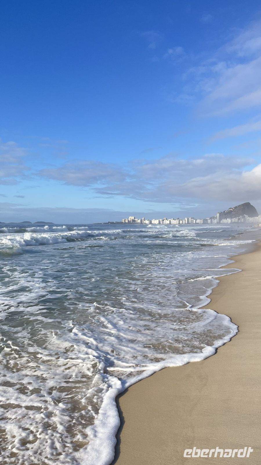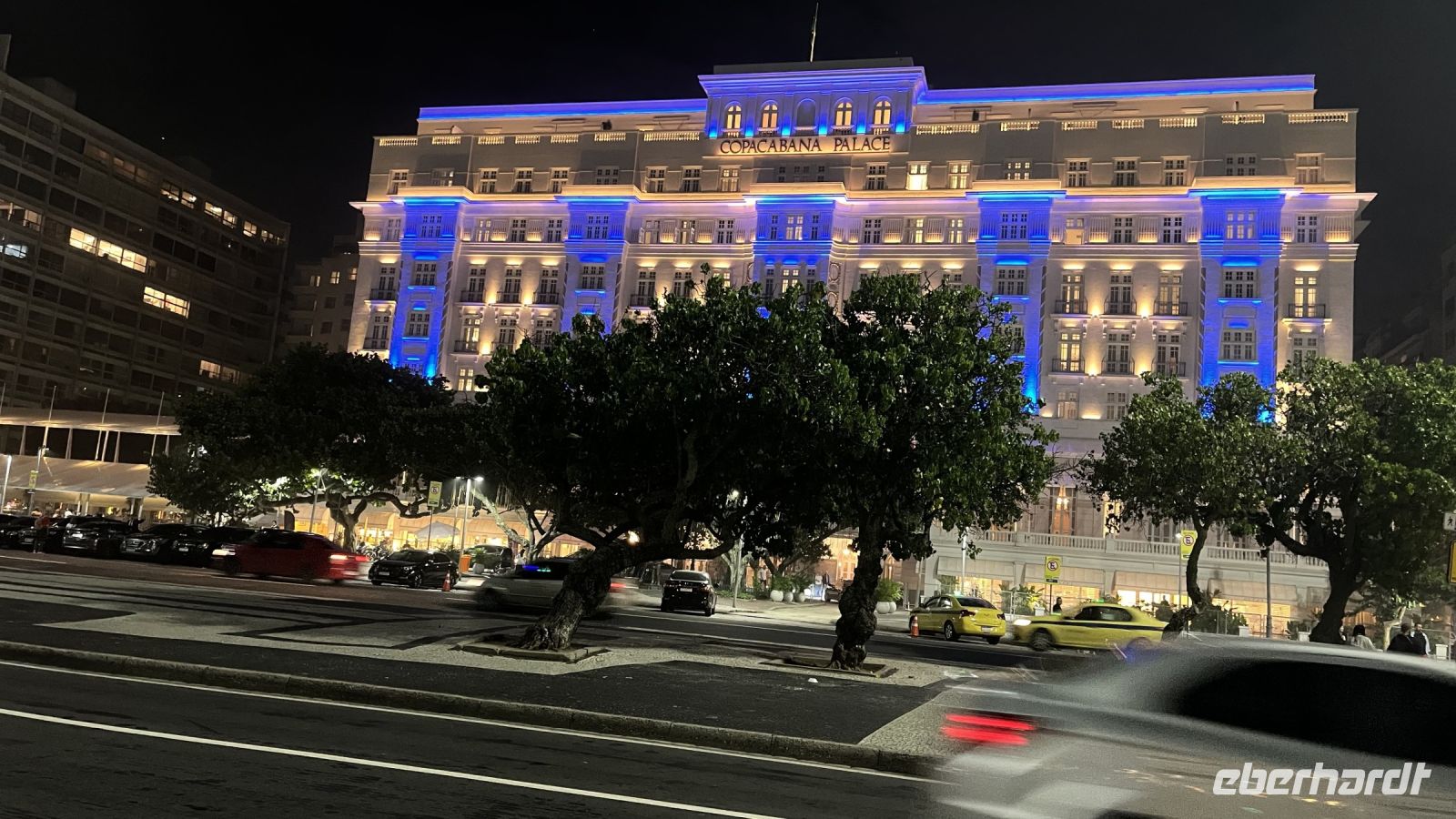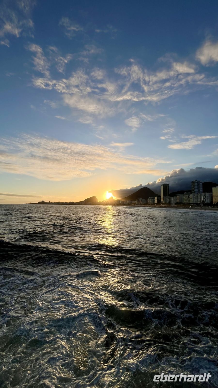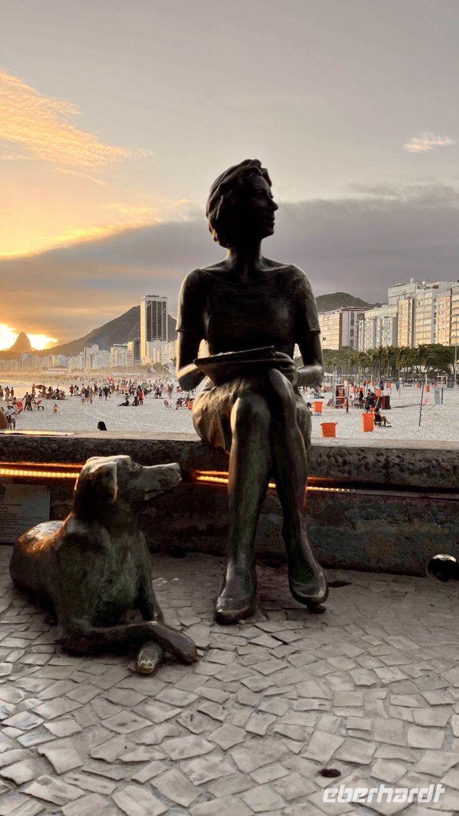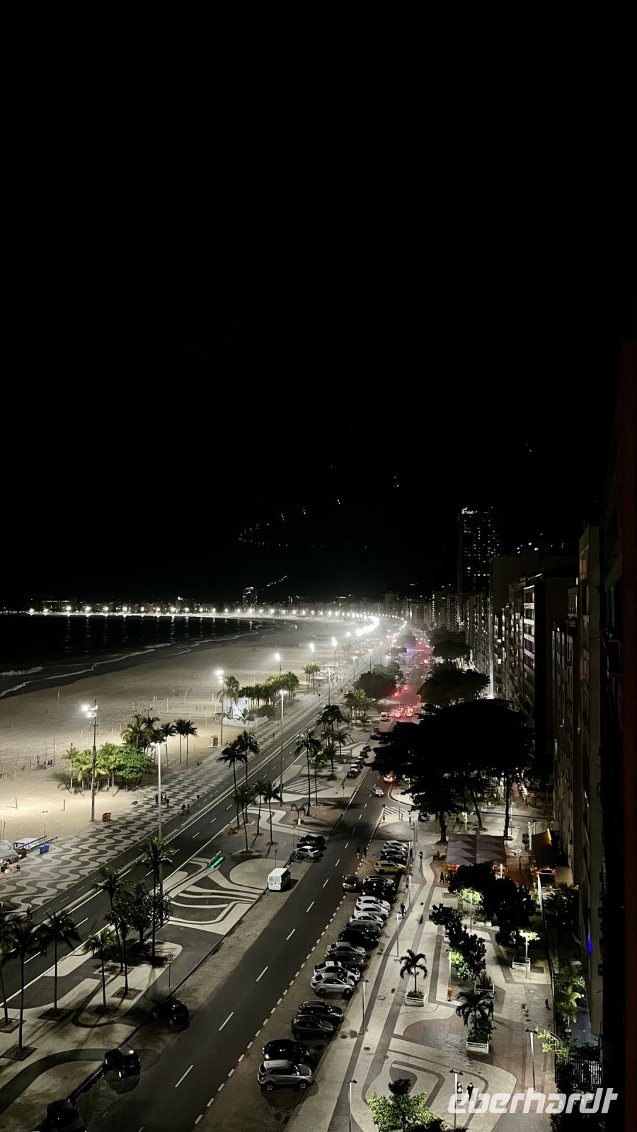 Auf dem Weg vom Flughafen zu unserem Hotel an der weltberühmten Copacabana vorbei, führte uns der Weg direkt zu einem traditionellen brasilianischen Churrasco. Wir aßen nach Herzenslust und stärkten uns für einen Spaziergang an der Copacabana-Promenade. In dieser Fußgängerzone herrschte an diesem Abend bei schönem Wetter reges Treiben. Viele Menschen, die Sport trieben, tanzten, Kunsthandwerk verkauften, feierten oder einfach nur den Sonnenuntergang genossen, waren dort versammelt, jeder auf seiner eigenen Mission.
