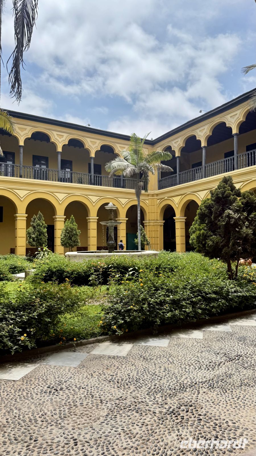 Der absolute Höhepunkt in der Altstadt war die Plaza Mayor – ein wahres Juwel, umgeben von makellos restaurierten Gebäuden mit den für Lima so typischen, wunderschönen Holzbalkonen, die früher überall zu finden waren. Anschließend besuchten wir das Kloster Santo Domingo, dessen spanischer Einfluss sofort ins Auge fällt: Die Wände sind mit originalen Fliesen aus Sevilla verkleidet. Besonders beeindruckend war der große zentrale Innenhof, in dem man förmlich die Geschichte und den Lauf der Zeit spüren konnte.