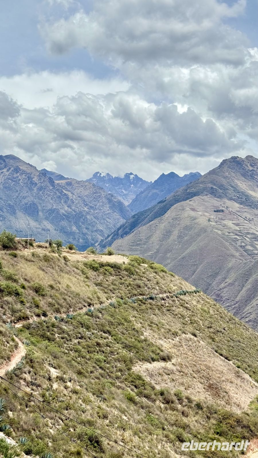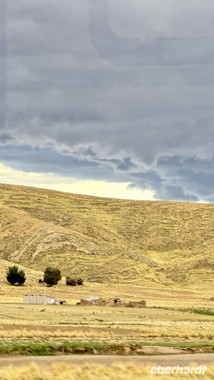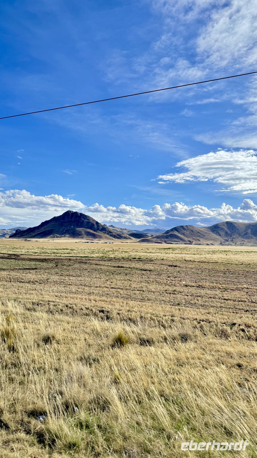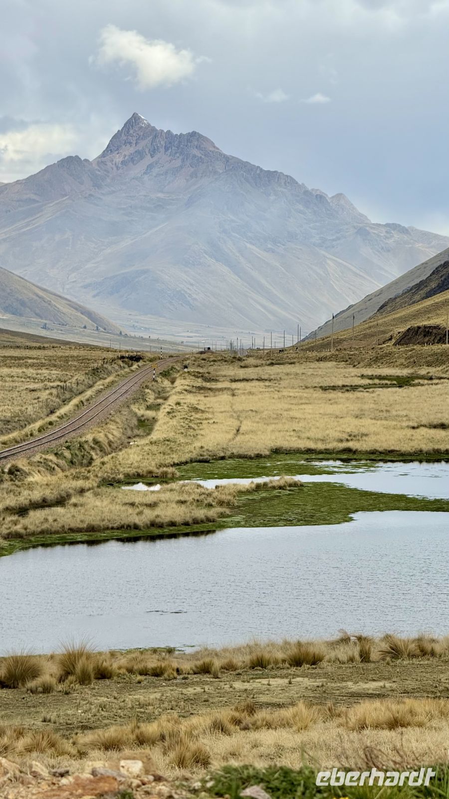 Dort genossen wir die spektakuläre Landschaft: die Bahnlinie, die in der Ferne verschwindet, riesige Berge, die fünftausend Meter übersteigen, mit schneebedeckten Gipfeln, die sich imposant vor uns erheben. Zu deren Füßen eine steppenartige Landschaft ohne weitere Vegetation als Gras aufgrund der nicht zu vernachlässigenden Höhe.