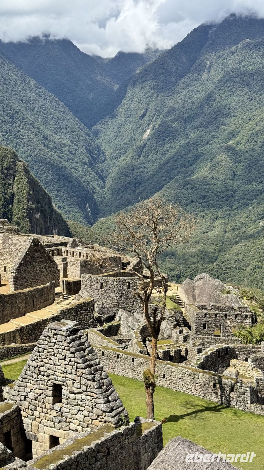 Einmal am Bahnhof, nachdem wir die Ankunft des Zuges fotografiert hatten, stiegen wir ein, ein Moment, von dem an sich eine Reihe von Ereignissen entfaltete, eine Sequenz von Eindrücken in Bildern. Es schien eine Reise durch die Zeit, mit dem Fluss an unserer Seite, der parallel zu den Bahnlinien zum gleichen Ziel floss: Aguas Calientes! Dort, nur einen kleinen Sprung weiter, oder sagen wir besser - nach einer Reihe von Serpentinen mit dem Bus, erreichten wir Machu Picchu! Der erste Eindruck, immer so erstaunlich, erfüllte uns mit Emotionen, die mit jedem Schritt, jeder Aussicht, jedem Foto wuchsen. Was vorgestellt oder versprochen wurde, bleibt hinter der Realität zurück, und so kehrten wir mit diesem Gefühl zum Hotel zurück, begierig zu essen und zu ruhen.