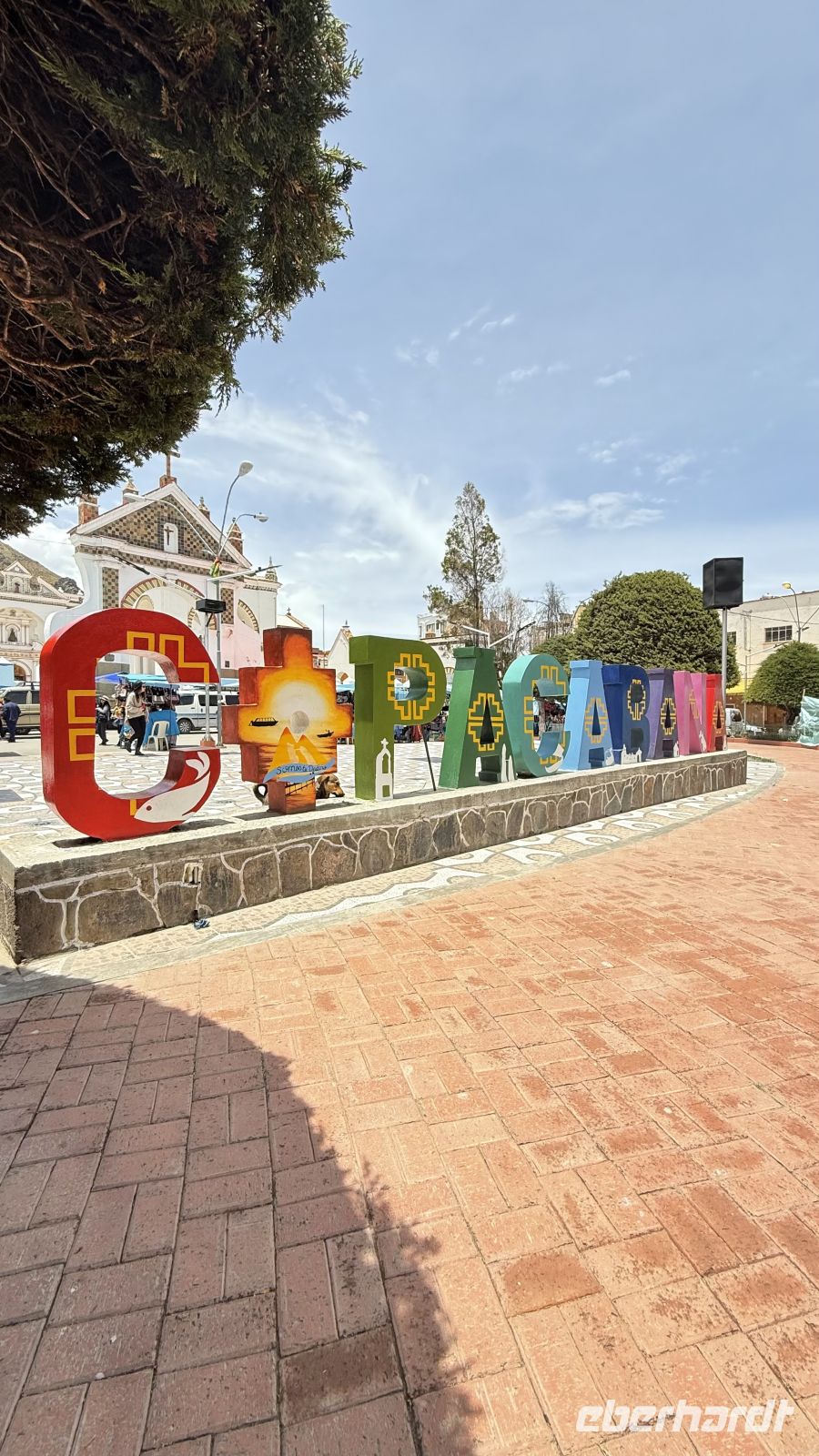 Und als wir es am wenigsten bemerkten, hatten wir bereits den Stempel im Pass, standen mit einem Fuß in jedem Land unter einem Bogen und mit einem Grenzstein genau unter uns. Unser Abenteuer in Bolivien konnte beginnen. Unsere erste Station: Copacabana! Dort bewunderten wir die berühmte Kirche und wollten der kuriosen Tradition beiwohnen, bei der neue Autos gesegnet werden, die man zuvor für diesen Anlass besonders dekoriert.