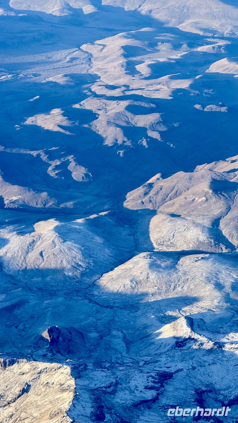 Es war eine Nacht, die sich wie alle mit dem Tag verband, nur dass es uns diesmal völlig klar war, da wir kurz nach zwei Uhr bereits in Aktion waren, bereit, erneut auf dieser Achterbahn der Emotionen aufzubrechen. Der Flughafen und seine Überraschungen, und dann auf zwei Flügen eine Aussicht, wie man sie selten zu Gesicht bekommt gepaart mit einem außergewöhnlichen Außenklima. Also saßen wir da, an die Fenster geklebt oder den Kopf so weit wie möglich angehoben, um alles sehen zu können. Wir kämpften gegen den Schlaf, um stundenlang diese zeitweise bergige, gefrorene und vegetationslose Landschaft zu bewundern, die unter unseren Füßen mit einer so interessanten Mystik vorbeizog.