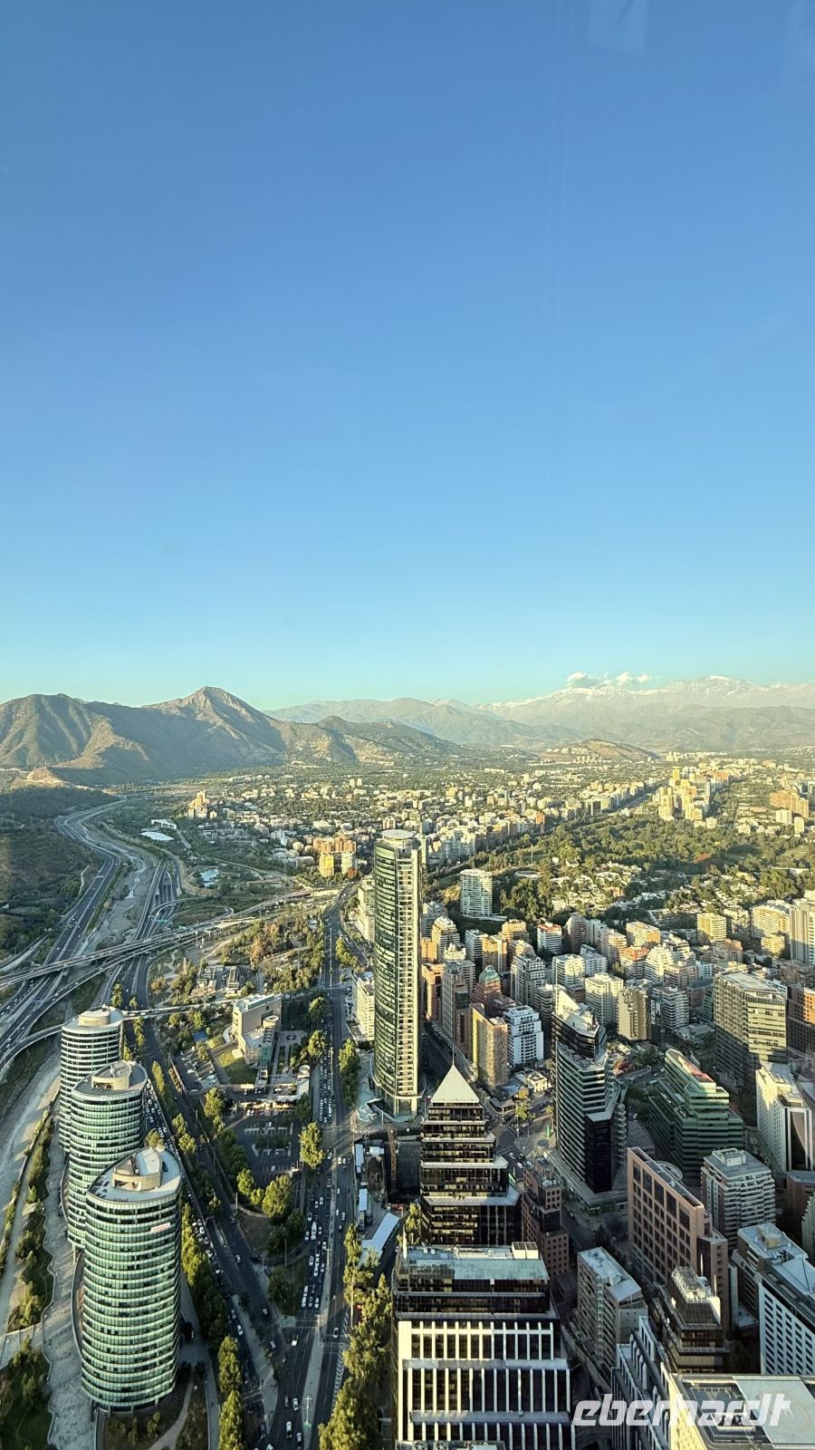 Einmal in Chile angekommen, füllten wir unsere Lungen mit frischer Luft und spürten, wie der Sauerstoff wieder ins Blut gelangte und unseren ganzen Körper erreichte. Wir entdeckten die Stadt Santiago, eine angenehme Überraschung für unsere Augen und eine Gastronomie, die dem Gaumen gefiel. Das Sahnehäubchen war dreihundert Meter über dem Boden: eine unglaubliche Aussicht vom Sky Costanera, ein Sonnenuntergang, der lange in unseren Pupillen bleiben wird, eine Mischung aus Licht und Schatten, die Anden im Hintergrund und die Pracht einer jungen und geordneten Stadt zu unseren Füßen.