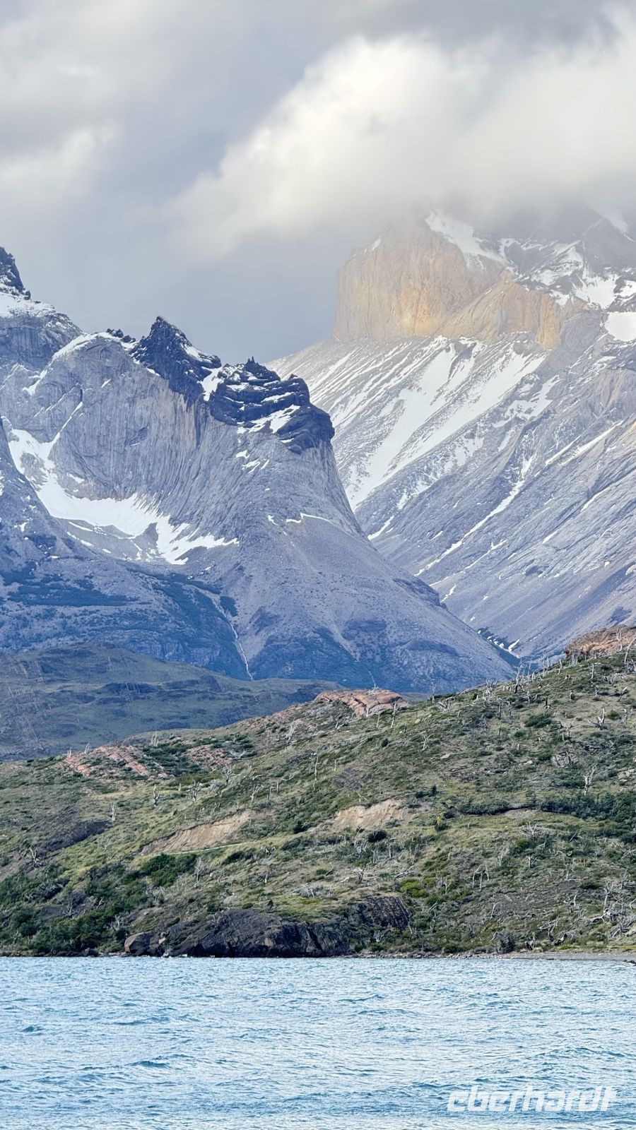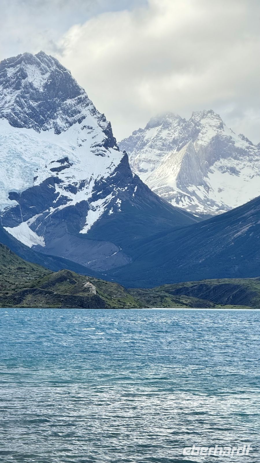 Die Cueva del Milodón bot eine willkommene Unterbrechung, einen kurzen Gang durch die Urzeit: eine Höhle von wahrhaft gewaltigen Ausmaßen. Schon waren wir im Nationalpark Torres del Paine, und das Wetter blieb feucht und grau – was der Schönheit jedoch kaum etwas anhaben konnte. Licht und Schatten wechseln ohnehin, und genau dieses Spiel verlieh der Landschaft jene tiefe Ruhe, die man sonst nur selten spürt. Der Lago Grey fügte sich nahtlos ein, lediglich in einem etwas kühleren Ton.